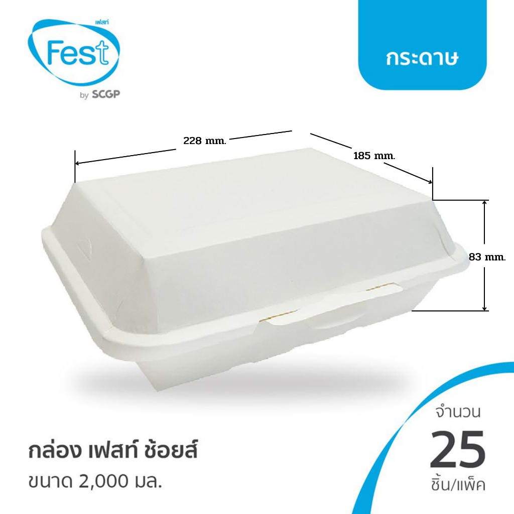 (ยกลัง) กล่องข้าวกระดาษ ขนาด 2,000 มล. สีขาว แบรนด์ Fest รหัส PB029