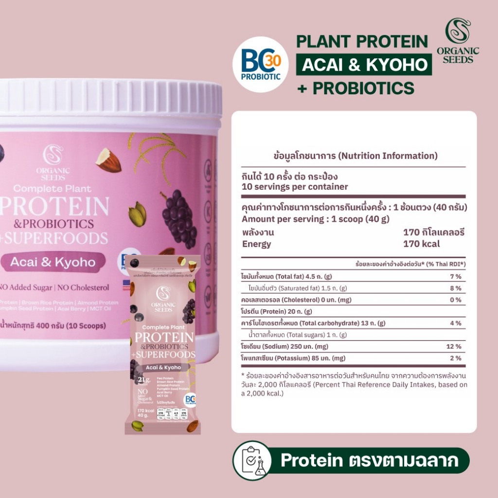 30 ซอง Protein Acai & Kyoho / โปรตีนพืชอาซาอิ องุ่นเคียวโฮ Complete Plant Protein& Probiotics
