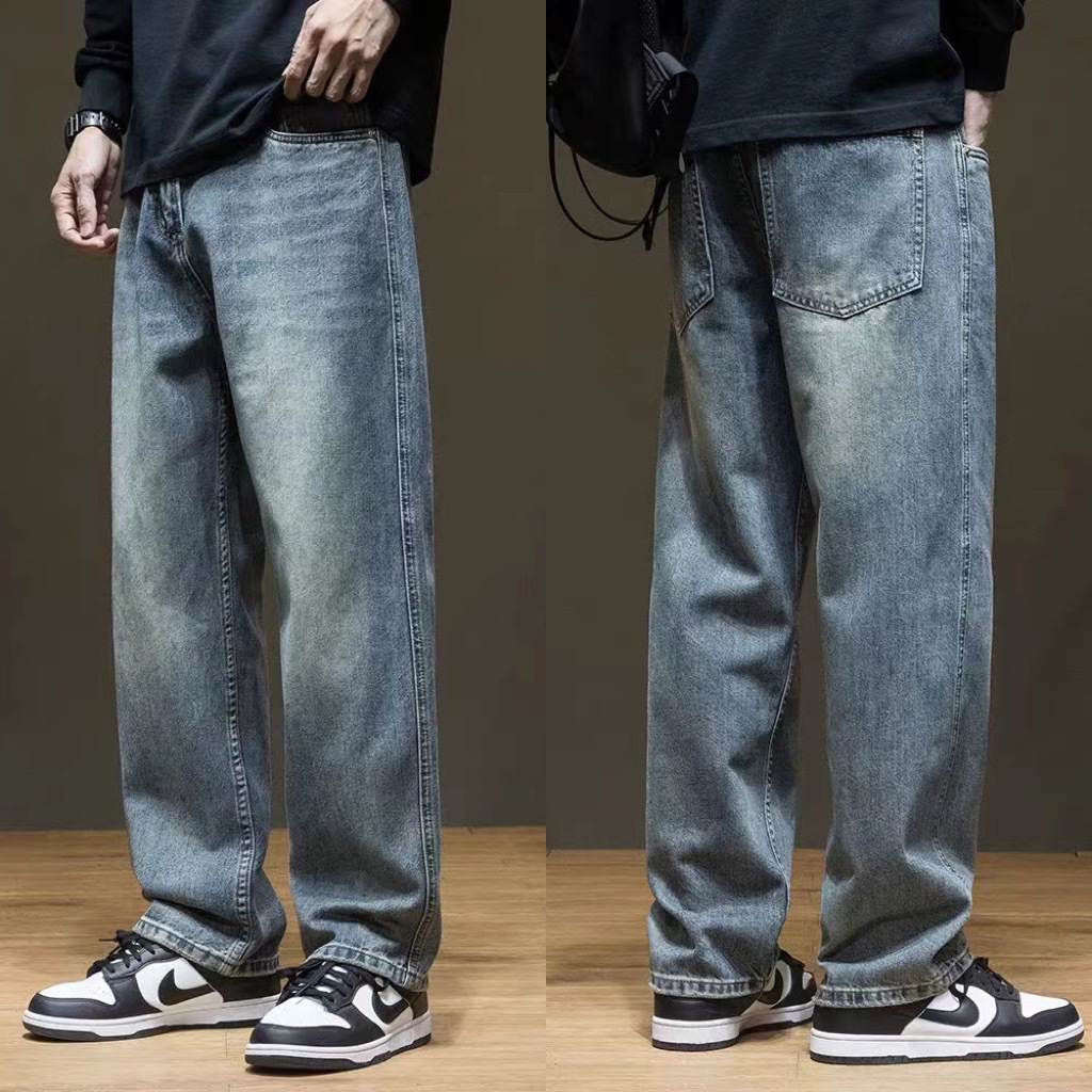 กางเกงยีนส์วินเทจชาย กางเกงยีนส์ทรงกระบอก ขายาว แต่ง เฟด ผ้ายีนส์นิ่ม ใส่สบาย ทรงสวย สีสวย สินค้าพร้อมส่ง