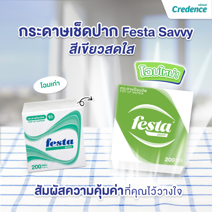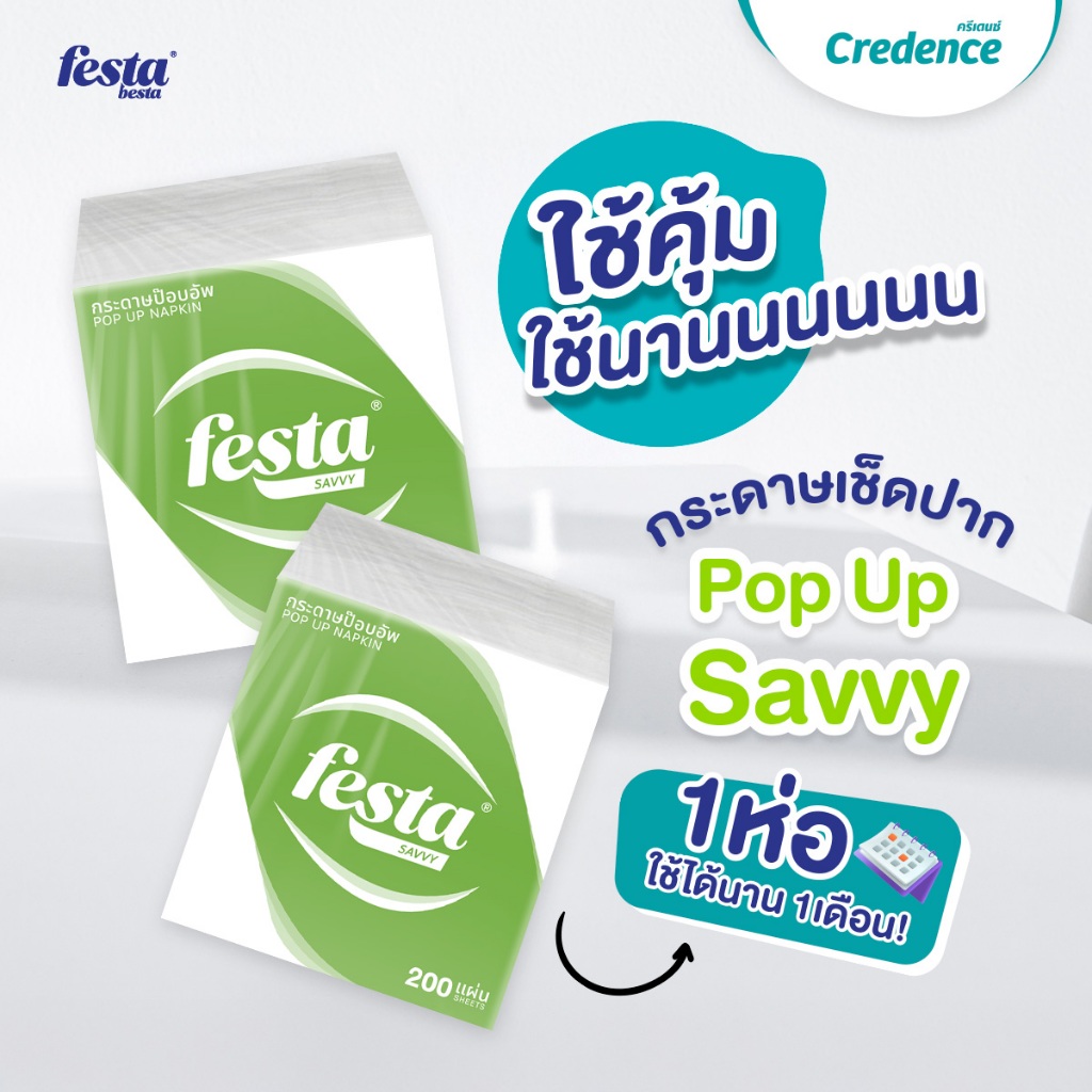 Festa Savvy : กระดาษเช็ดปาก Pop Up 200 แผ่น/ห่อ [ยกลัง] (40088)