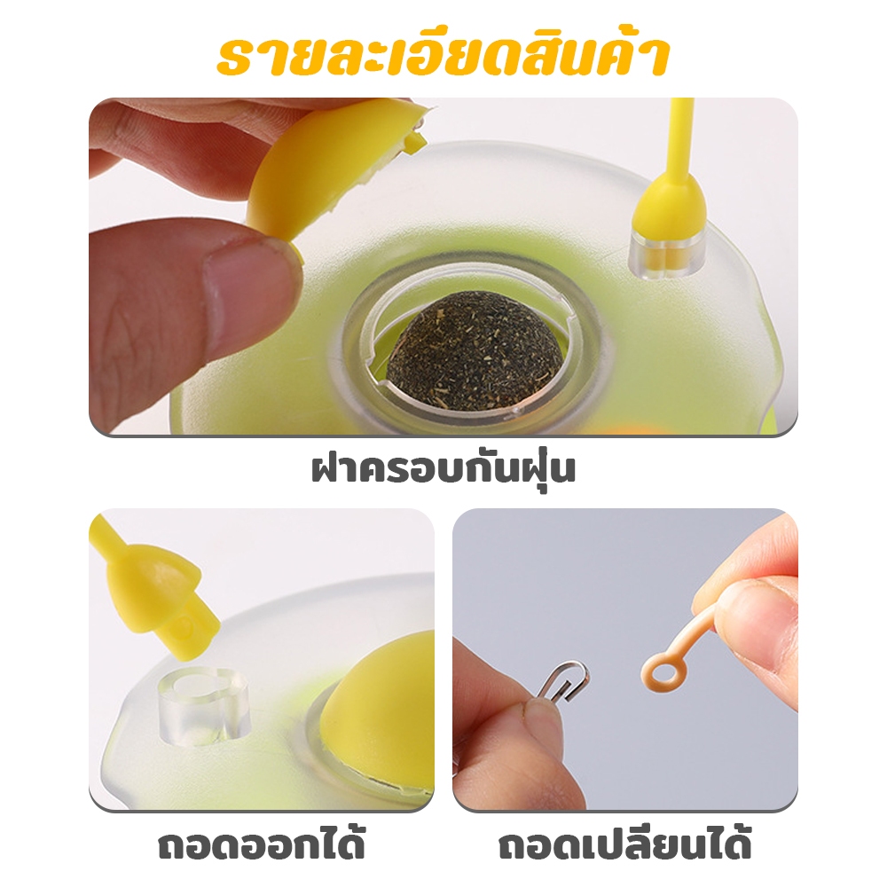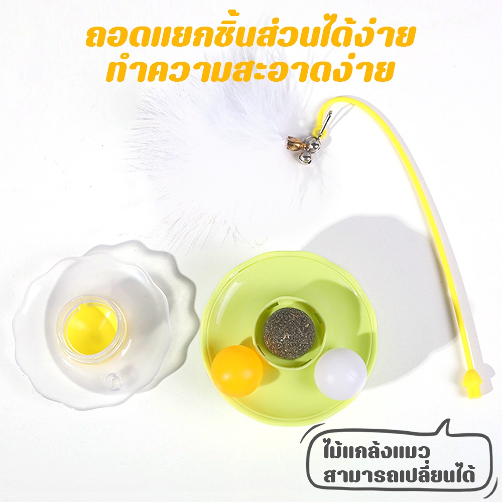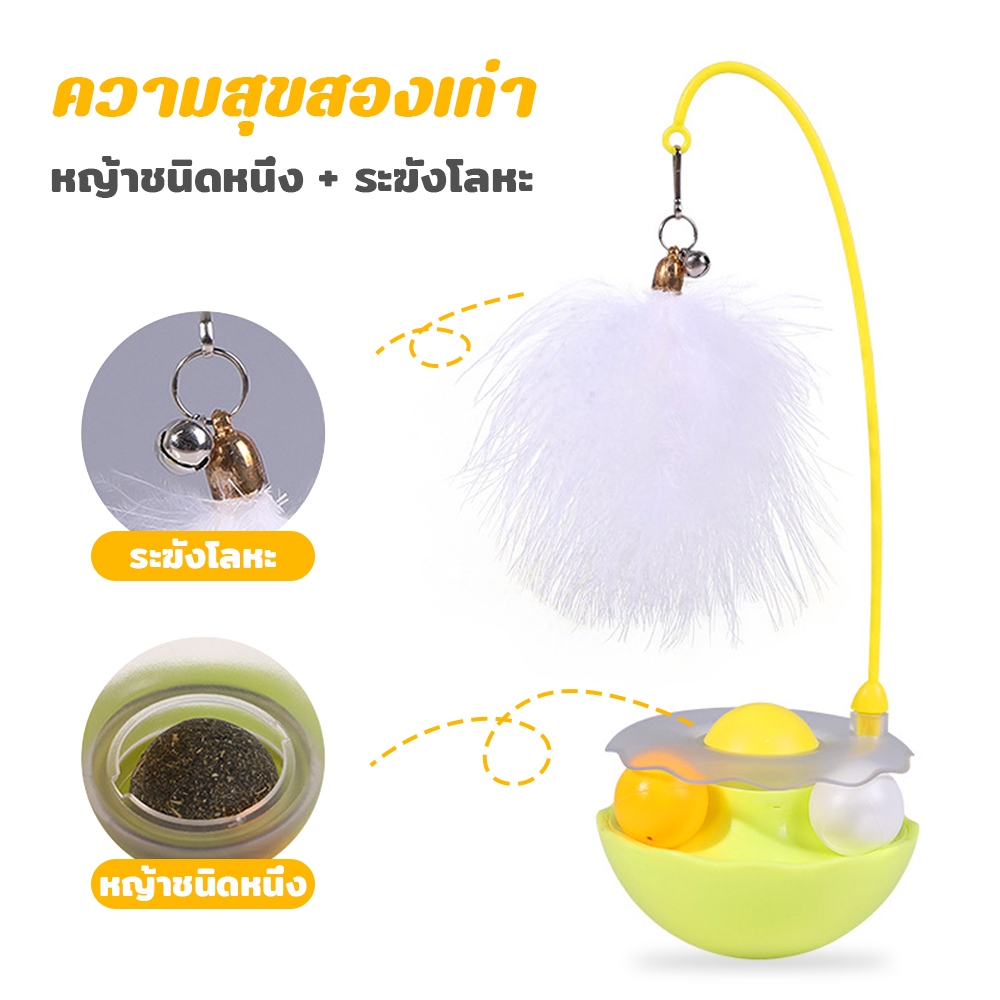 Petcho ของเล่นแมว ของเล่นสัตว์เลี้ยง ไม้ล่อแมว ขนนก กัญชาแมว การหมุน 360° ดีไซน์ทัมเบลอร์ แคทนิป + ลูกบอลกระดิ่ง