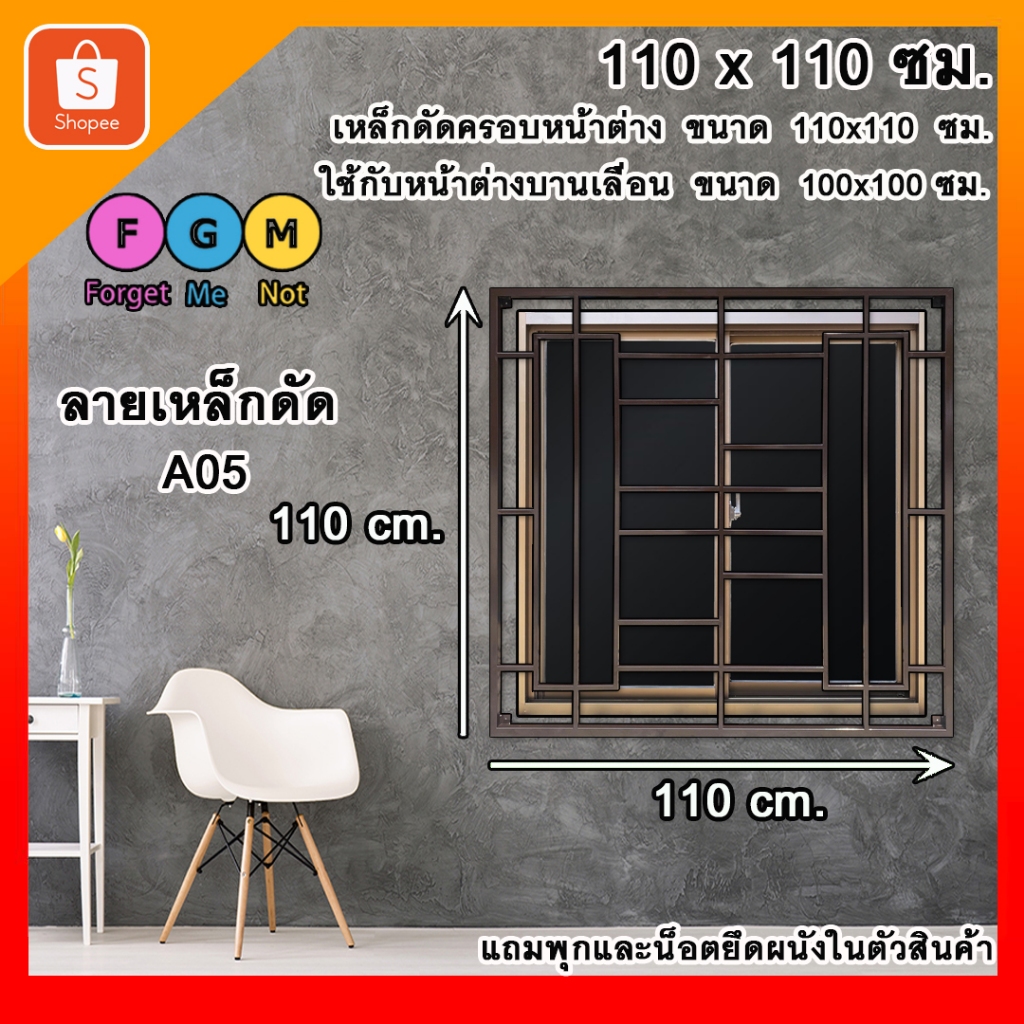 เหล็กดัดครอบนอกสีชา 110x110 ซม. เหล็กดัดหน้าต่าง เหล็กดัดกันขโมย เหล็กดัดสำเร็จรูป FGM
