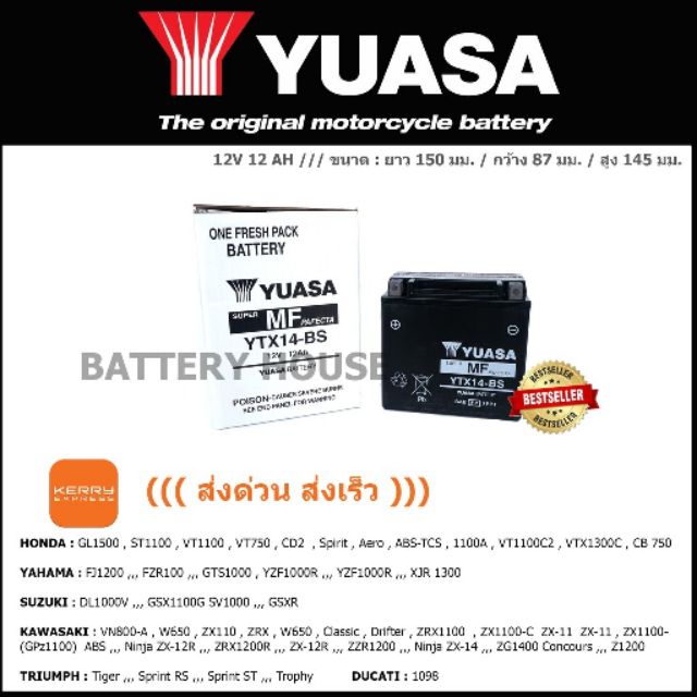 แบตเตอรี่มอเตอร์ไซค์ YUASA รุ่น YTX14-BS ((ส่งด่วน ส่งเร็ว))