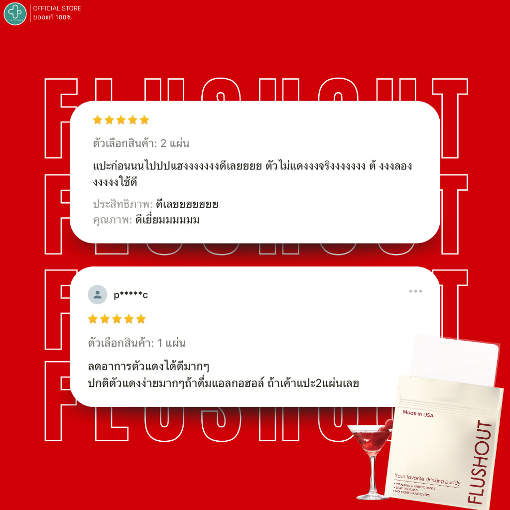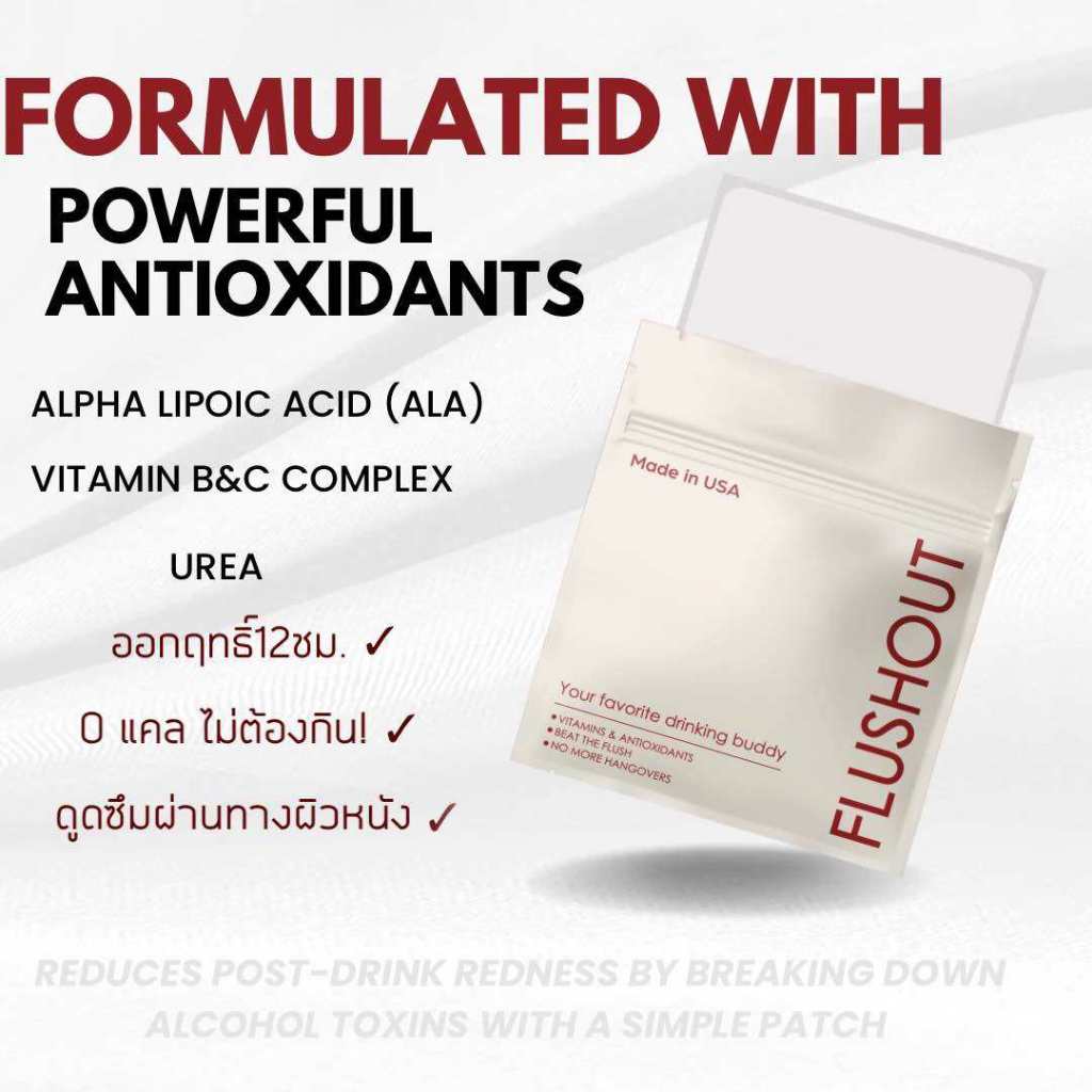 [ส่งด่วน] แผ่นแปะ Flushout แก้หน้าแดง แก้แฮงค์ 3 แผ่นสุดคุ้ม แปะก่อนดื่ม ช่วยดูแลร่างกายระหว่างดื่ม