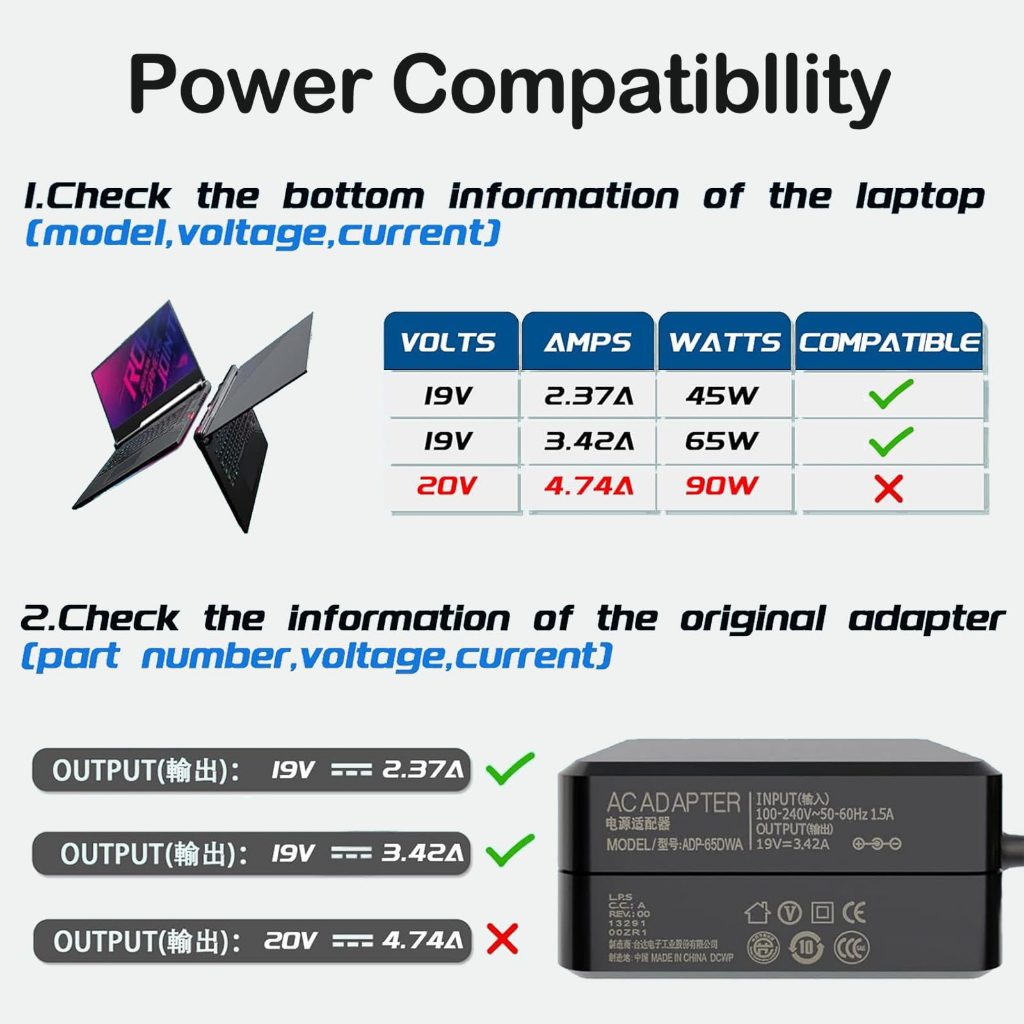 อะแดปเตอร์โน๊ตบุ๊ค ASUS (65W) 19V3.42A *มีหัว3ขนาด หัว 5.5x2.5mm 4.0x1.35mm 4.5x3.0mm สายชาร์จไฟเอซุส Notebook Adapter