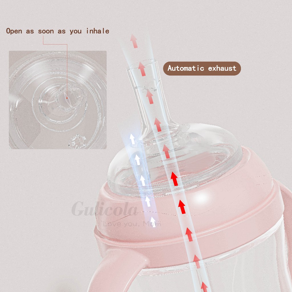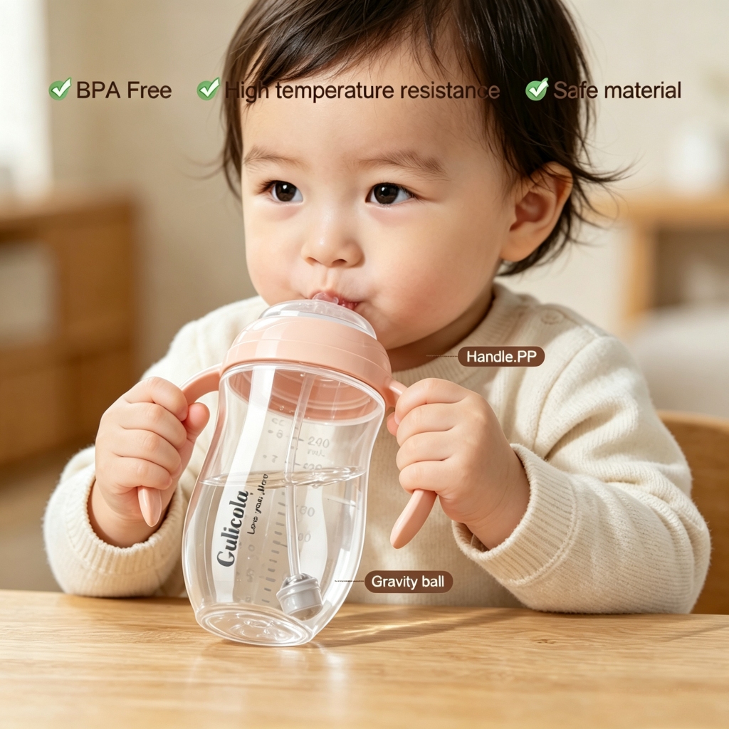 Gulicola PP 240ML ถ้วยหัดดื่มสําหรับเด็ก พร้อมที่จับพร้อม ลูกบอลแรงโน้มถ่วง, สีขาว/ชมพู