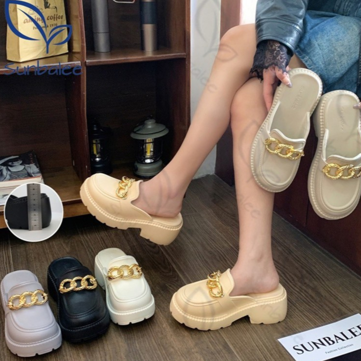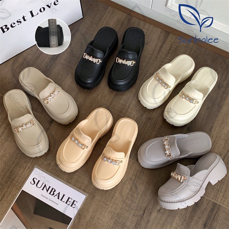 SHO-SUNX88 รองเท้าคัทชู แบบสวมเปิดส้น แถมตัวติด รองเท้าเสริมส้นสูง สำหรับผู้หญิง ทรงเท้าเรียว สินค้าพร้อมส่ง