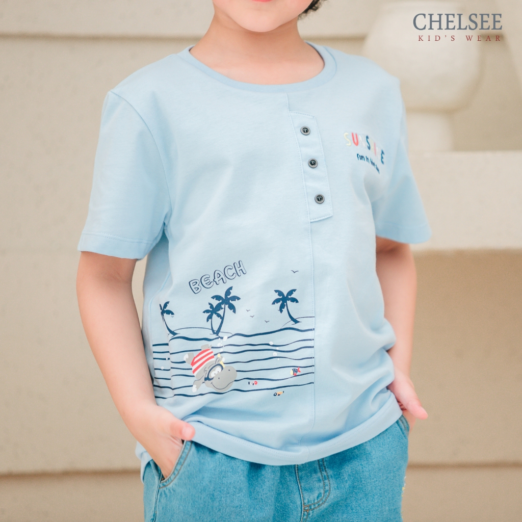 Chelsee เสื้อยืดคอกลม แขนสั้น ลายทะเล ผ้า 100%Cotton เด็กผู้ชาย อายุ 1.5-10 ปี เสื้อผ้าเด็กโต รุ่น 128147