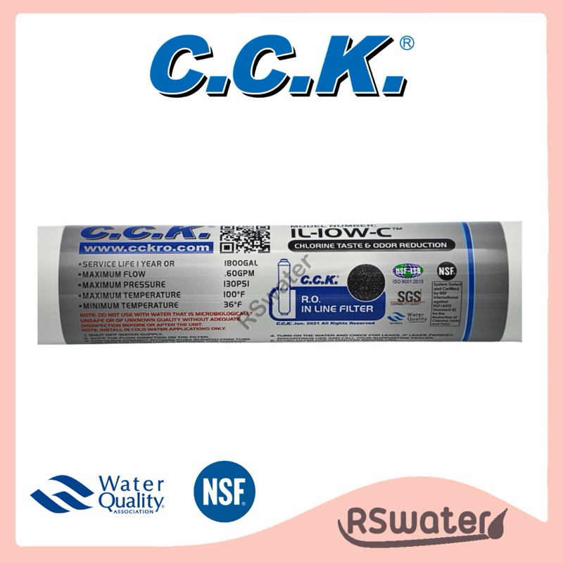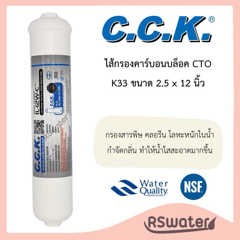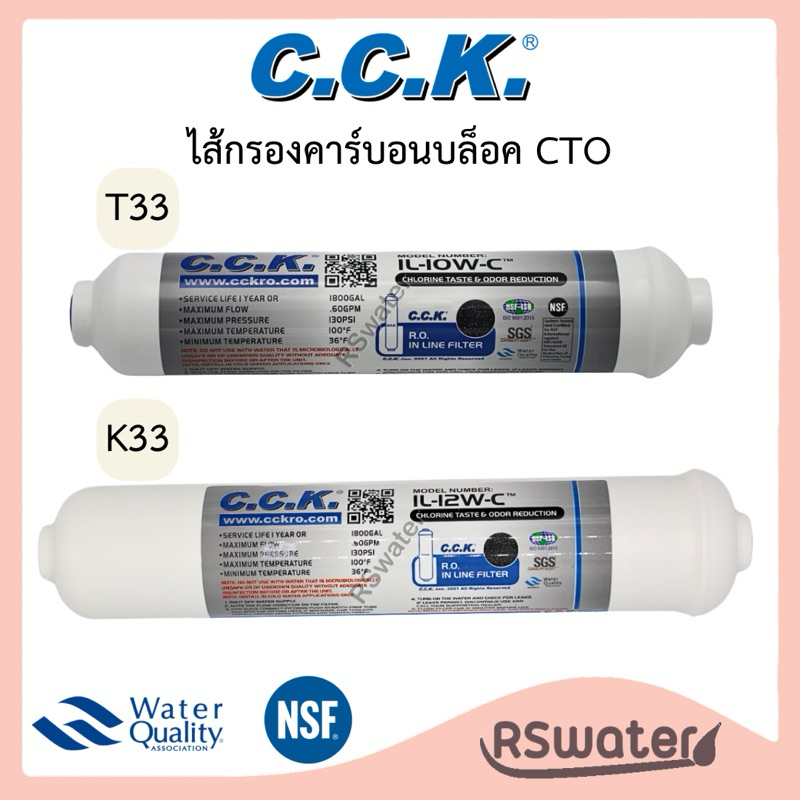 CCK ไส้กรองน้ำ อินไลน์ โพสต์คาร์บอน หัวเกลียว ขนาด 2 x 10 นิ้ว (T33) / 2.5 x 12 นิ้ว (K33) Inline Postcarbon