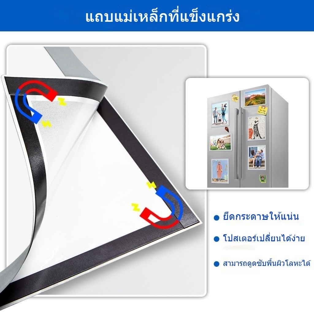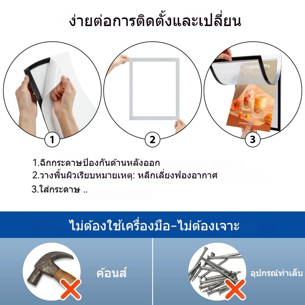 ✅ออกใบกำกับภาษี - กรอบป้ายติดผนัง กรอบโชว์ป้ายประกาศ แม่เหล็ก ไม่ต้องเจาะผนัง มีกาวในตัว A4 และ A3