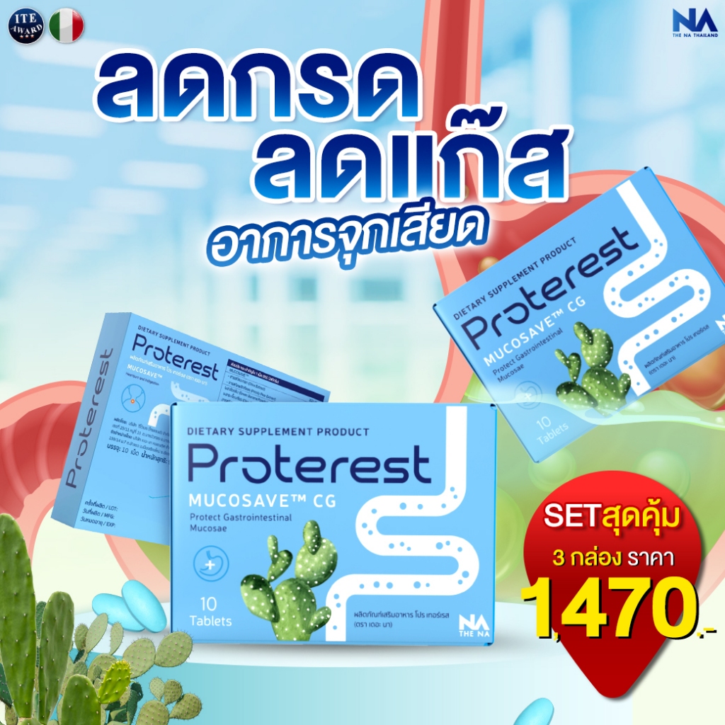 Proterest Mucosave โปรเทอเรส ลดกรดไหลย้อน ลดกรด ลดแก๊ส ลดการบวม คุณภาพสูง นวัตกรรมสุดล้ำที่ใช้สารสกัดจากธรรมชาติ