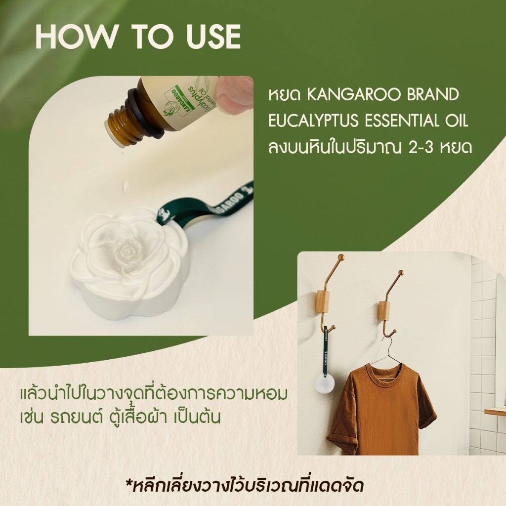 (เซต)(EXP: 28.11.69)Kangaroo Brand eucalyptus essential oil 15ml. น้ำมันหอมระเหยยูคาลิปตัสตราจิงโจ้ พร้อมหินกระจายกลิ่น