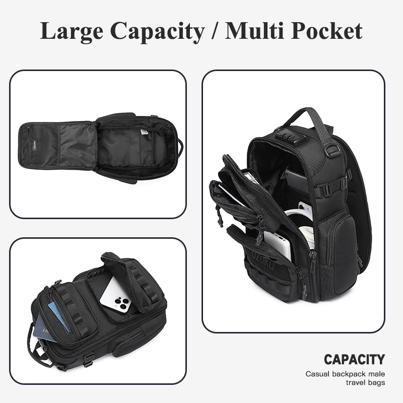 OZUKO โอซูโกะ ความจุขนาดใหญ่ผู้ชายกระเป๋าสะพายหลายกระเป๋าป้องกันการโจรกรรมล็อคกันน้ํากระเป๋าสะพายข้างสลิงกระเป๋า