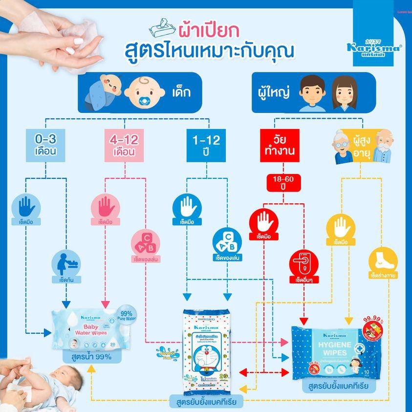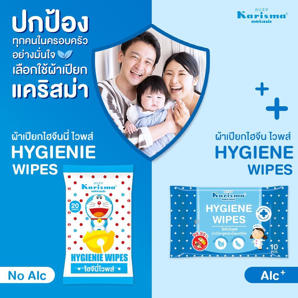 KARISMA HYGIENE WIPES 10 PCS แคริสม่า ทิชชู่เปียก ไฮจีนไวพส์ สูตรผสมแอลกอฮอล์ ขนาด 10 แผ่น