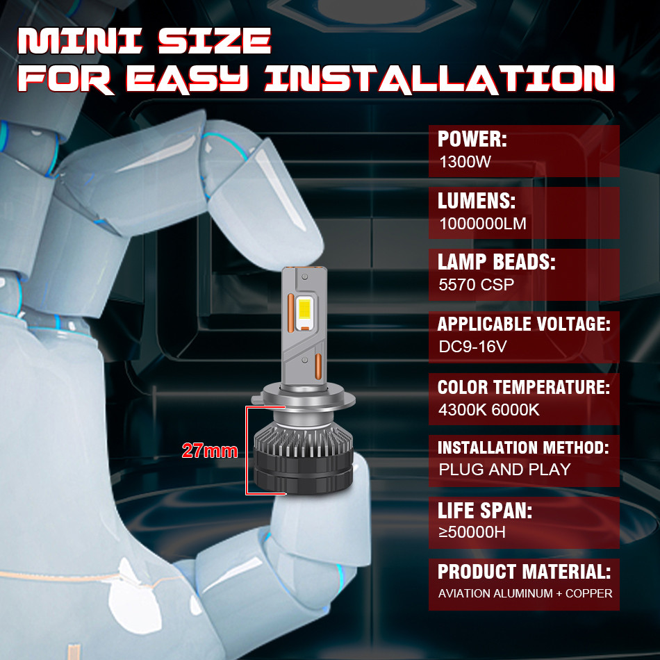 รับประกันสามปี HLXG 1300W H7 LED ไฟหน้าหลอดไฟ Canbus H4 H8 H9 H11 HB4 HB3 9005 9006 9012 Turbo LED หมอกโคมไฟต 4300K 6000K