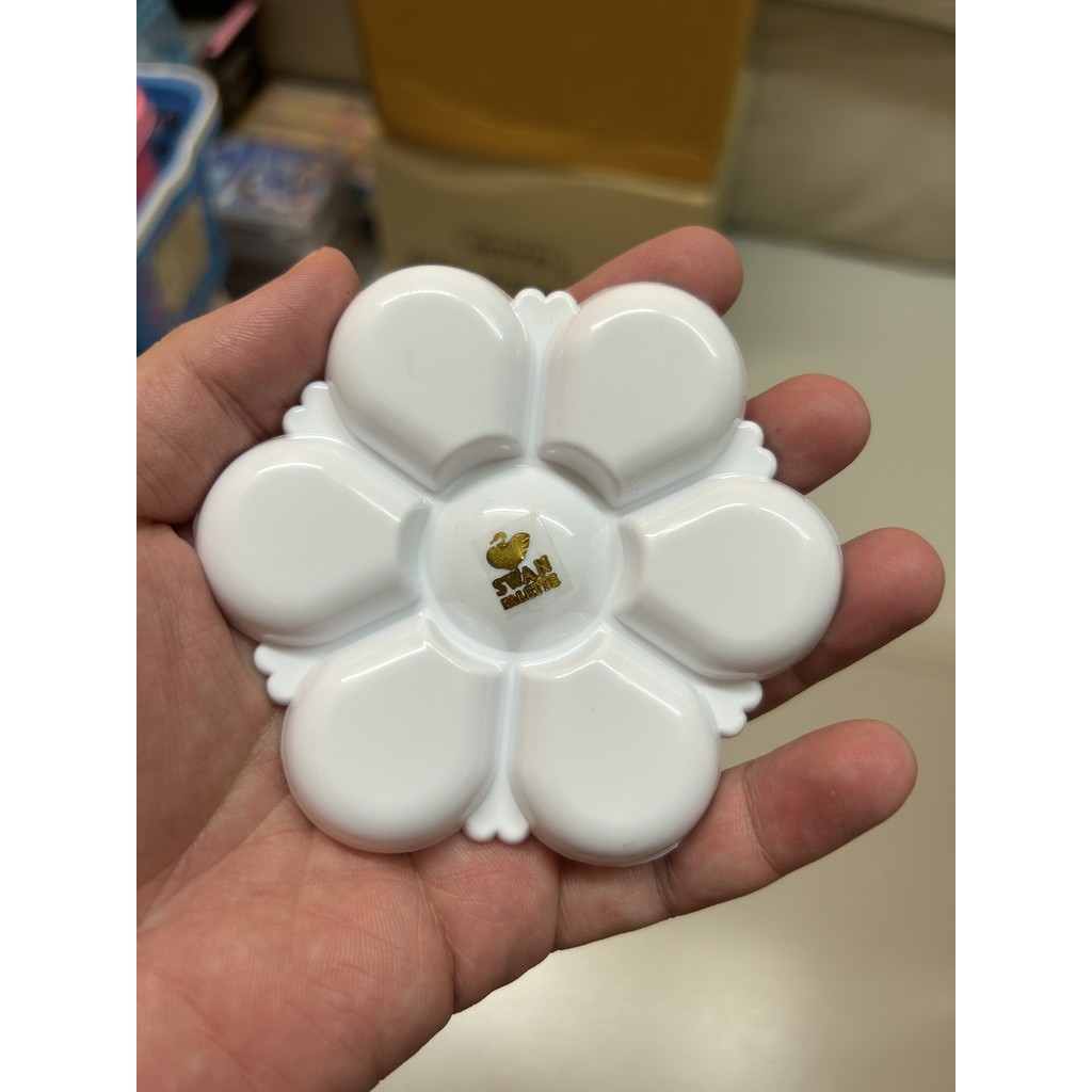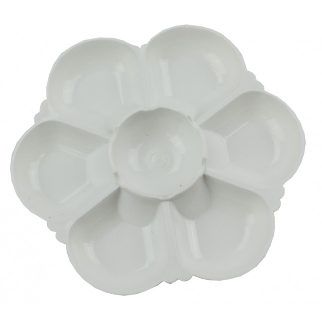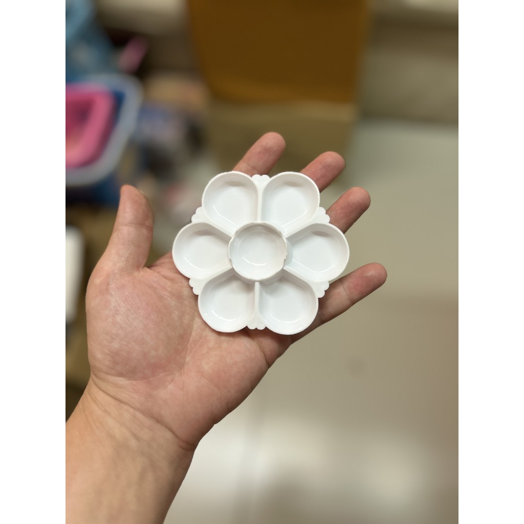 S0457 [รุ่นสีขาวทึบ] จานสี พลาสติก รูปดอกไม้ 7หลุม ถาดหลุม จานผสมสี ระบายสี หลายขนาด