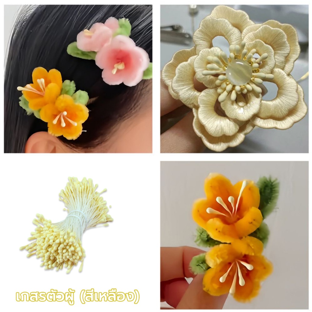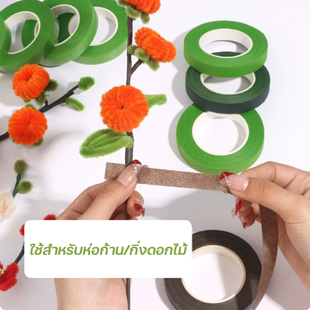 ก้านลวดดอกไม้สีเขียว และฟลอร่าเทป เกสรดอกไม้ประดิษฐ์ DIYดอกไม้วัสดุที่ทําด้วยมือ