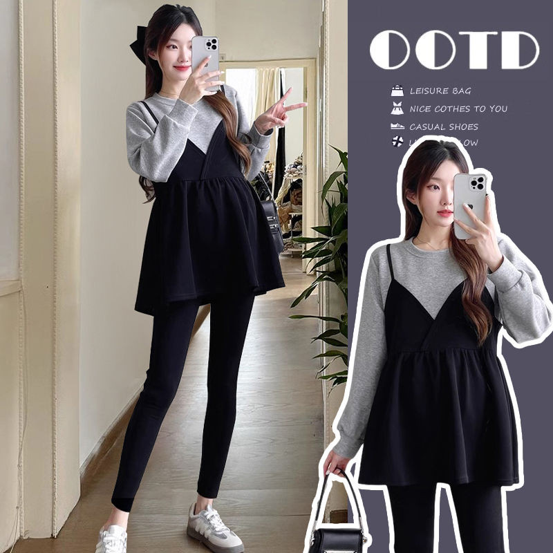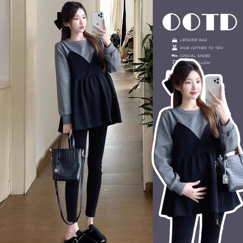 💕✨💏ชุดคลุมท้องแฟชั่น ชุด2ชิ้น🍑เสื้อ+กางเกงเลกกิ้ง ผ้านุ่ม ใส่เที่ยวทำงานได้⭐️สุดชิค(ขายแยกชิ้น)