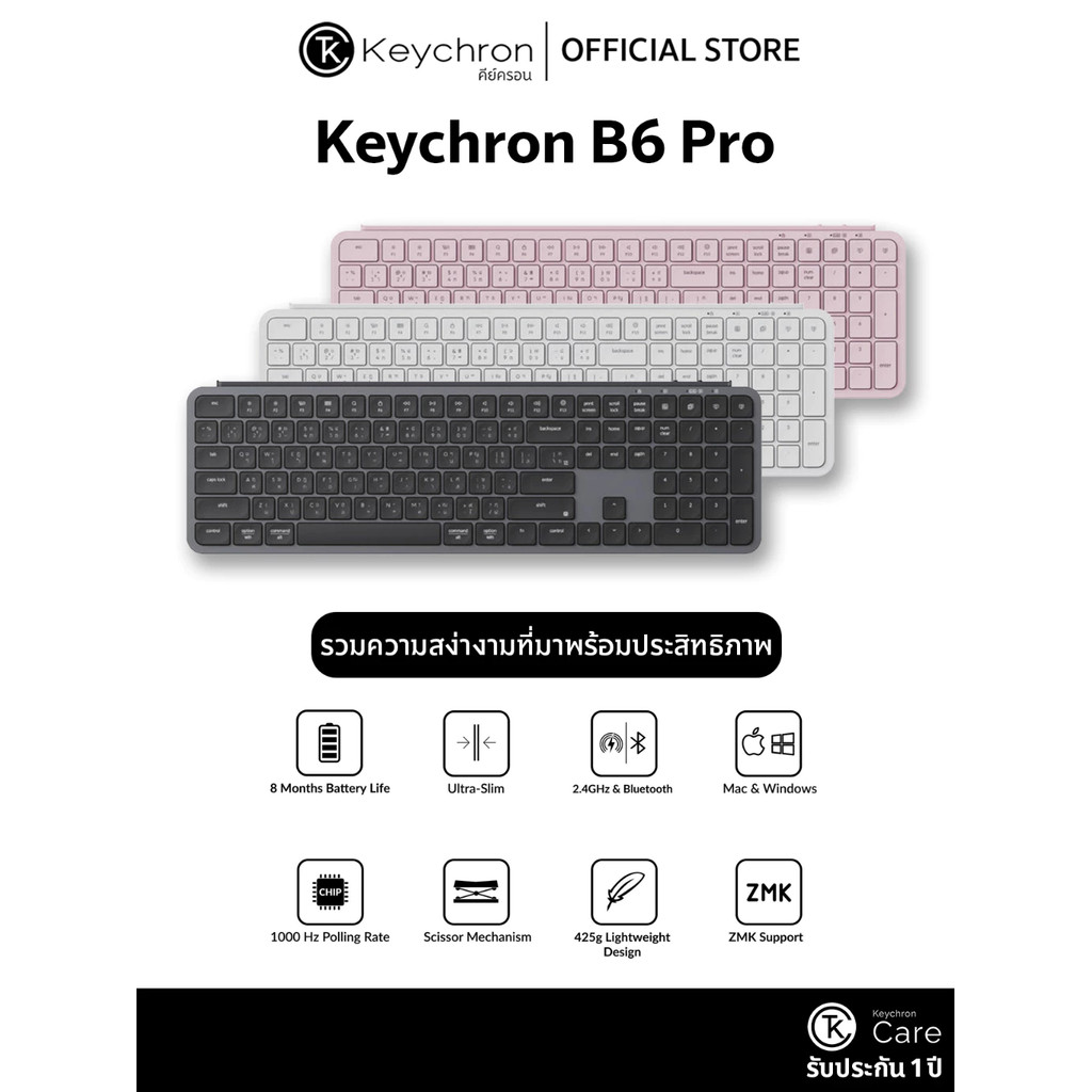 KEYCHRON B6 PRO ULTRA SLIM WIRELESS KEYBOARD 100% FULL SIZED คีย์บอร์ดไร้สาย บางพิเศษ คีย์ TH/EN