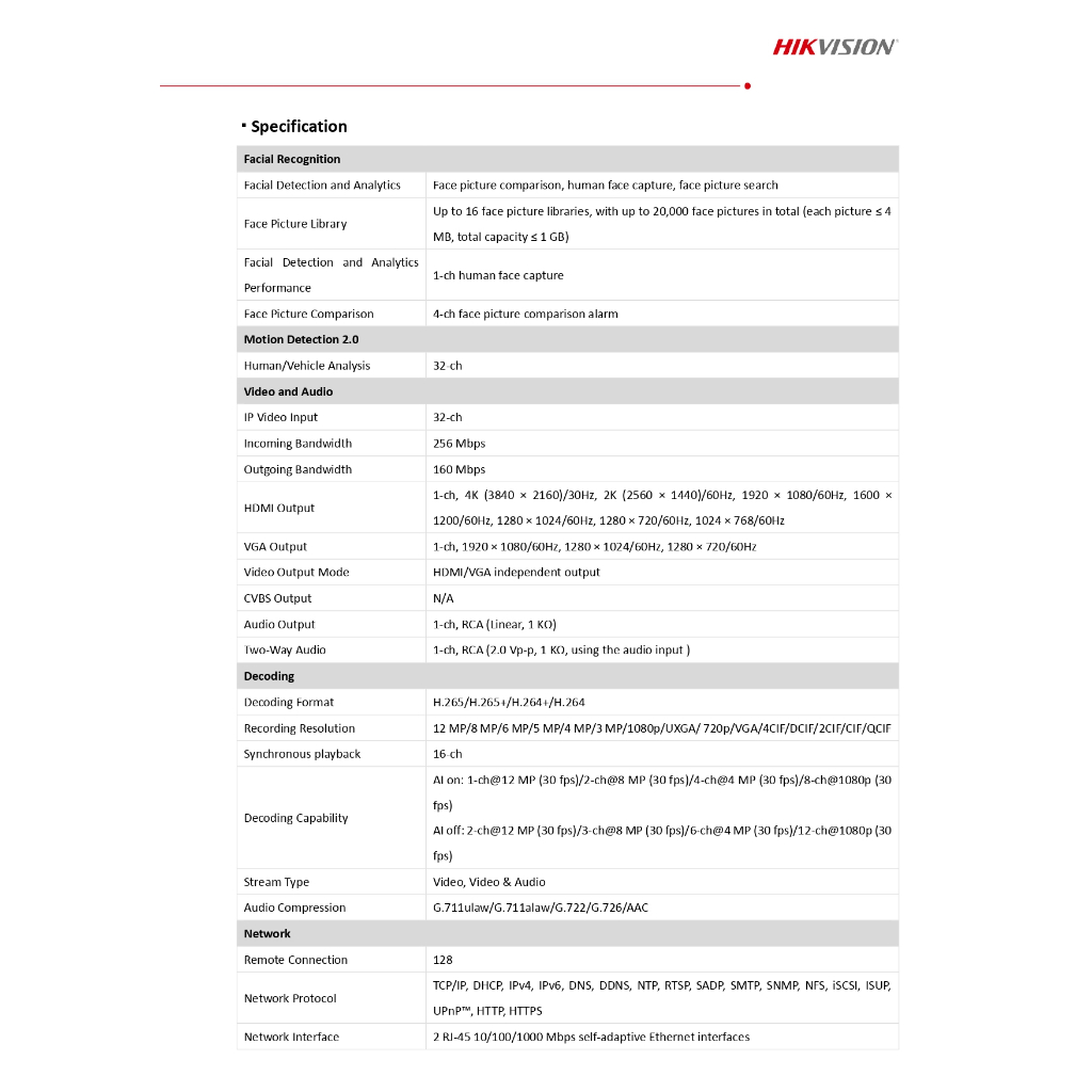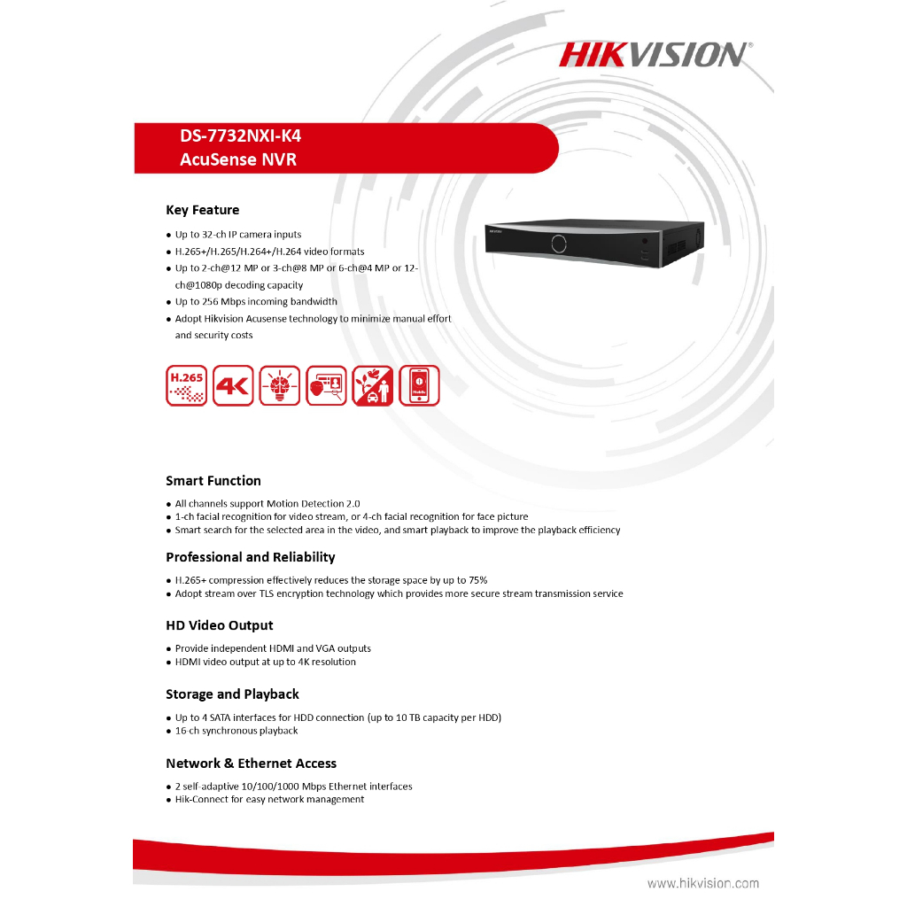 HIKVISION DS-7632NXI-K2 & DS-7732NXI-K4 Acusense NVR 2SATA เครื่องบันทึก IP 32ช่อง(รับประกันสินค้า 3 ปี)