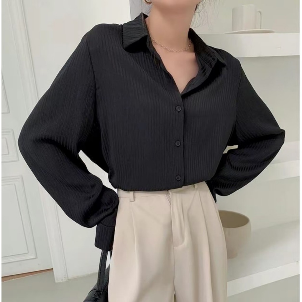 【ส่งจากไทย】เสื้อเบลาส์ลายทางแขนยาว เสื้อเชิ้ตหญิงมาใหม่ คอปกแฟชั่นผู้หญิง ผ้าดีใส่สบาย เรียบๆ