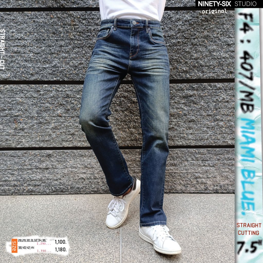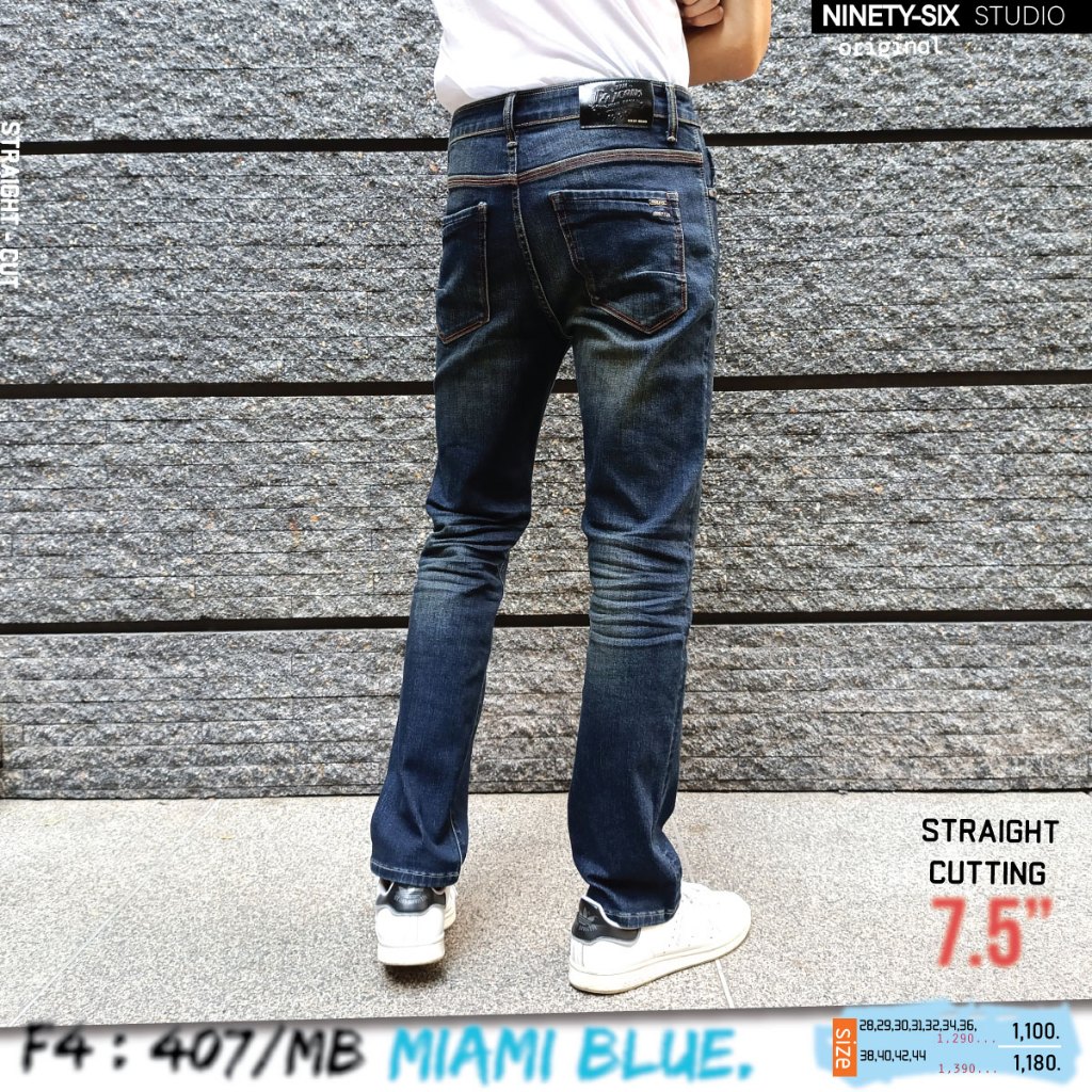 F4-407 / MB MIAMI BLUE กางเกงยีนส์ผ้ายืด ทรงกระบอกกลาง ปลายขา 7.5"