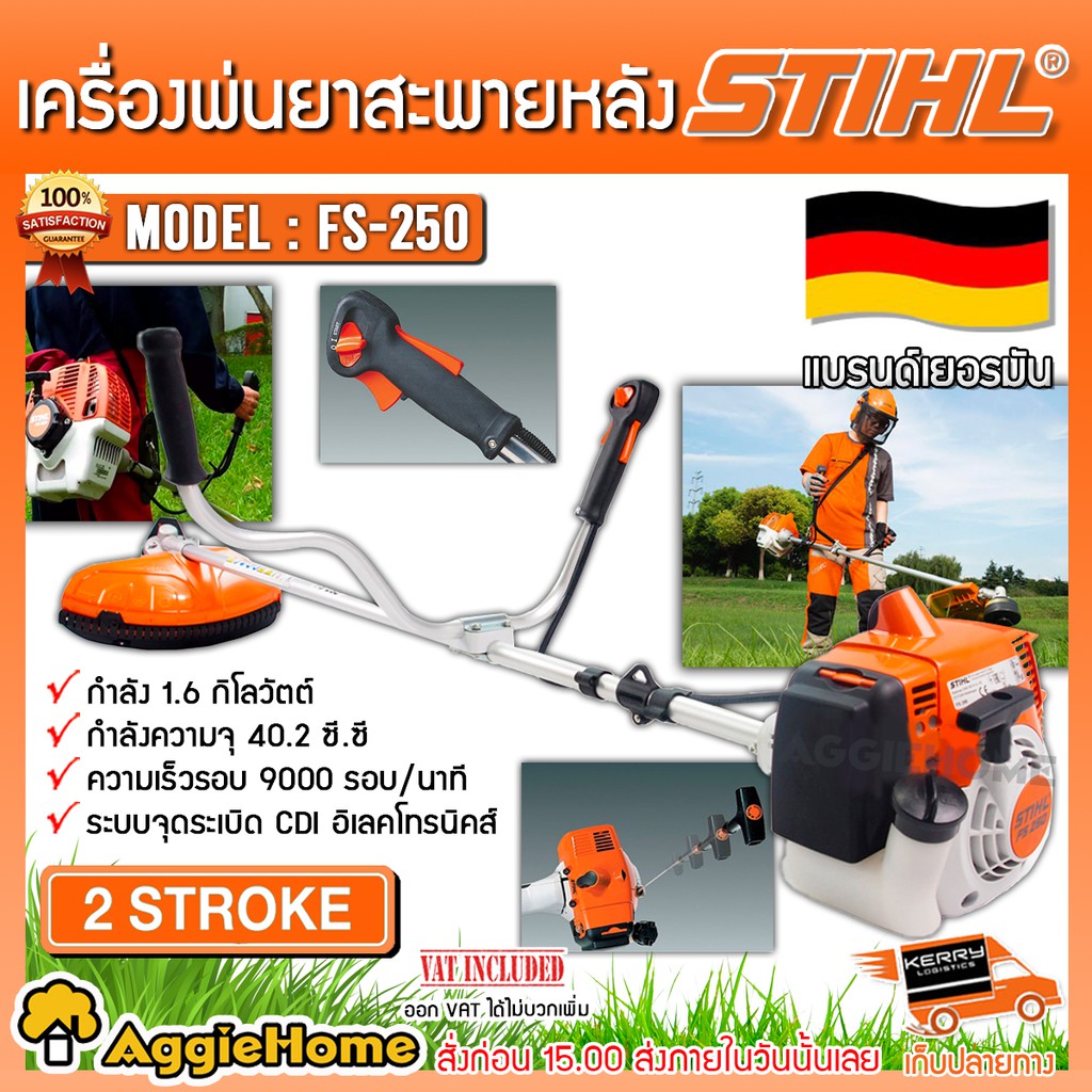 STIHL เครื่องตัดหญ้า 2 จังหวะ รุ่น FS250 (ข้อแข็ง) กำลัง 2.2 แรงม้า /1.6 KW./ 9000 รอบ/นาที เครื่องตัดหญ้า ตัดหญ้า
