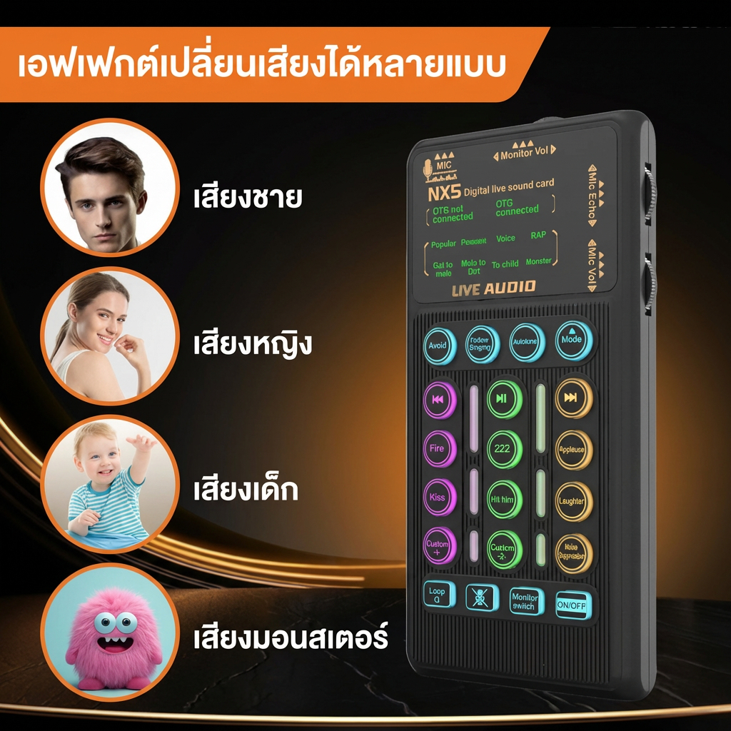 [พร้อมส่งจากไทย] Hosabely NX5 PRO Sound Card การ์ดเสียงไลฟ์สดอัจฉริยะ ชิป DSP ตัดเสียงรบกวน OTG Lossless สำหรับ ของแท้ 100%