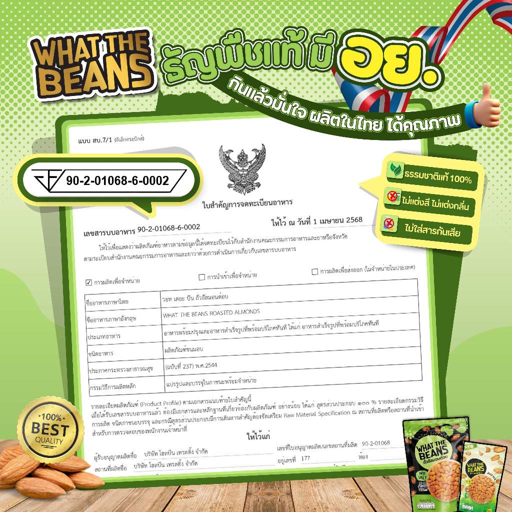 อัลมอนด์ 1 กิโลกรัม WHAT THE BEANS อบธรรมชาติ USA ไม่เกลือ ไม่เนย อบใหม่ทุกวัน