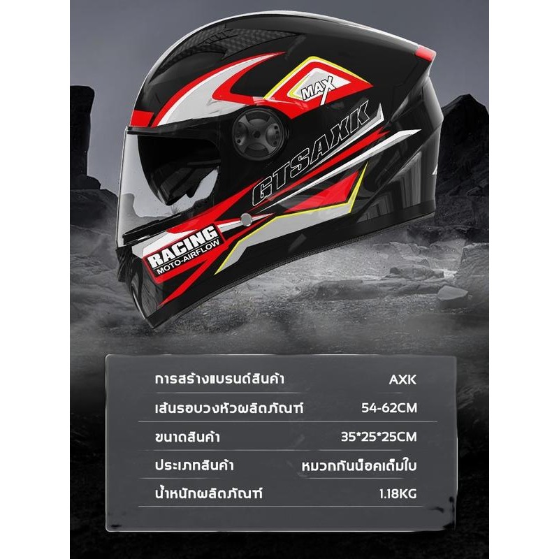 หมวกกันน็อคเต็มใบ หมวกนิรภัย เลนส์ 2 ชั้น กัน UV