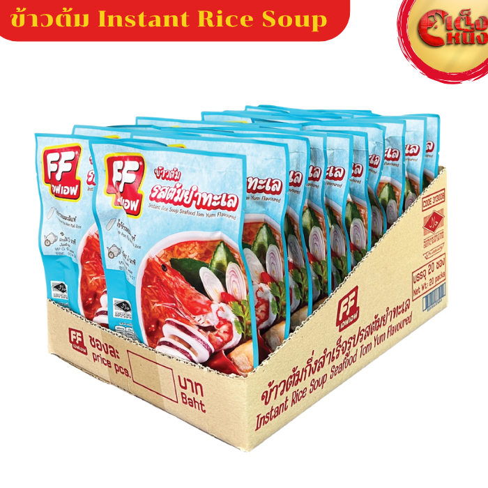 ข้าวต้มแบบซอง เอฟเอฟ รสต้มยำทะเล ใช้ข้าวหอมมะลิแท้ ชงน้ำร้อน 5 นาที