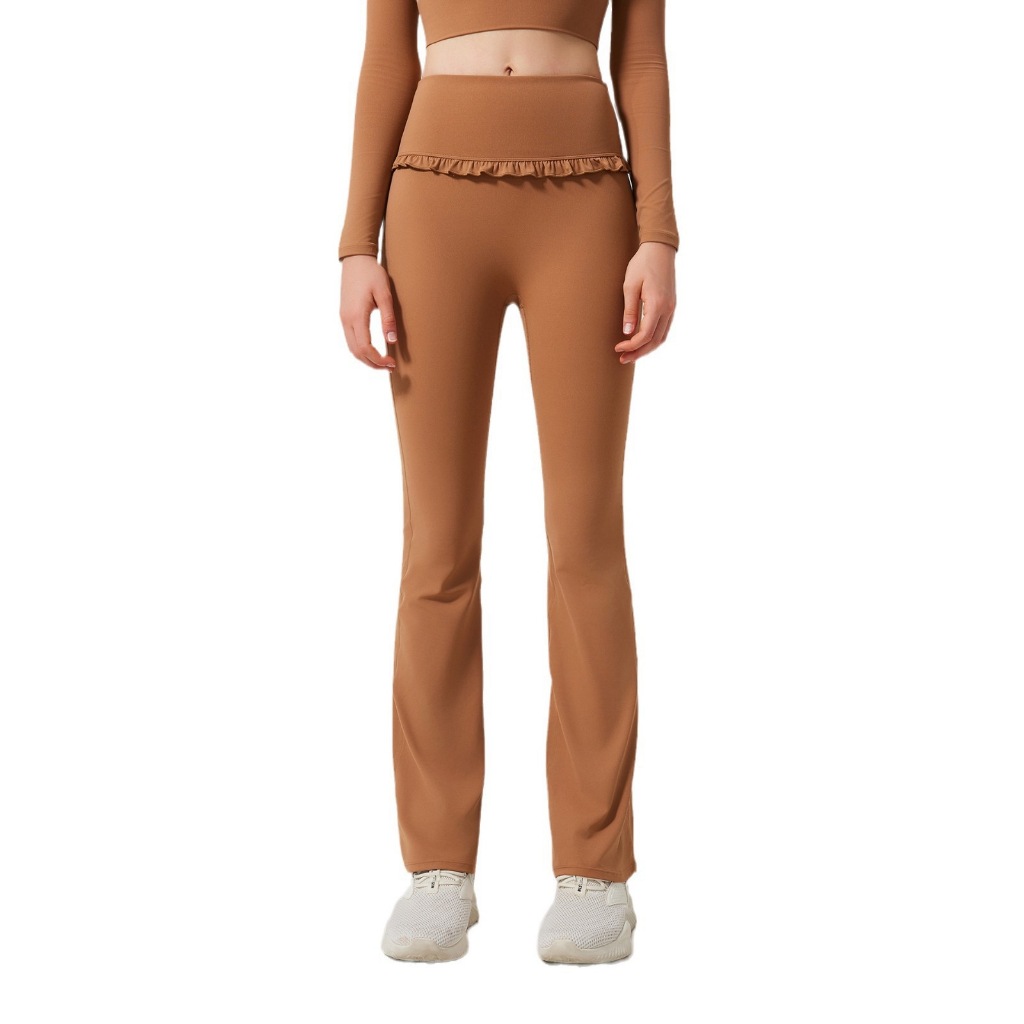 Hoppe Fumeng กางเกงขาบานเอวสูงสำหรับผู้หญิง ดีไซน์แฟชั่น สบายตัวสำหรับการออกกำลังกายและโยคะ