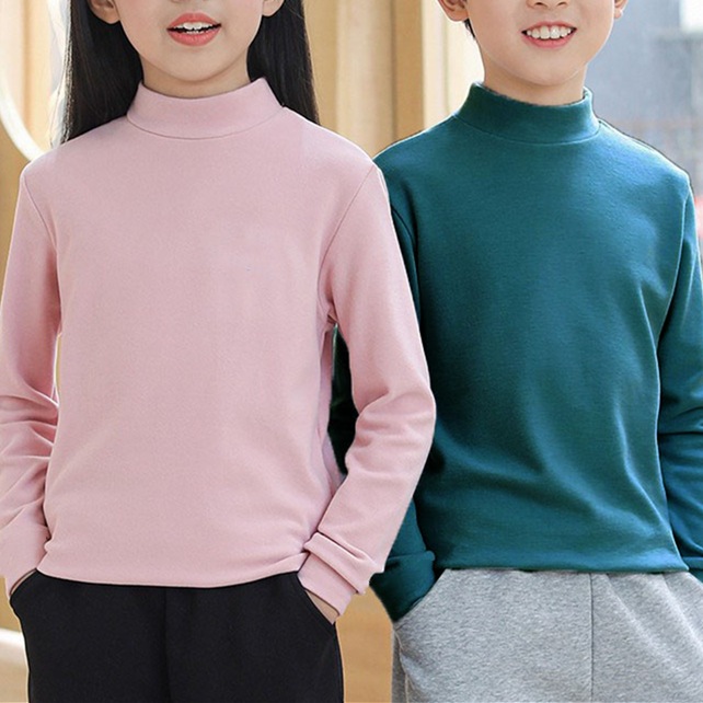 🔥พร้อมส่ง จากไทย🔥เสื้อแขนยาวเด็ก คอเต่า 2-12 ปี เสื้อกันหนาวเด็ก หนา นุ่ม คอสูง