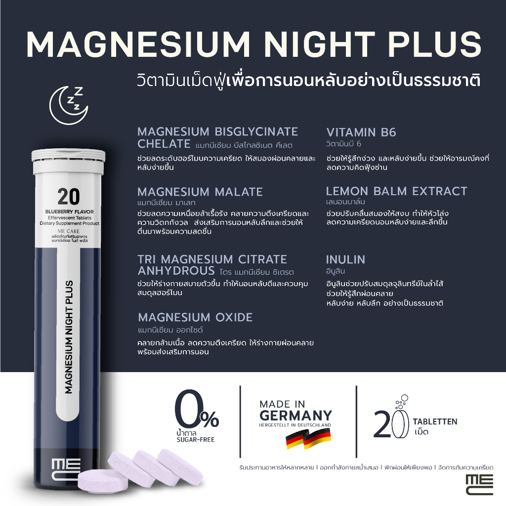 ME CARE Magnesium Night Plus วิตามินเม็ดฟู่ 2 หลอด กลิ่นบลูเบอร์รี่