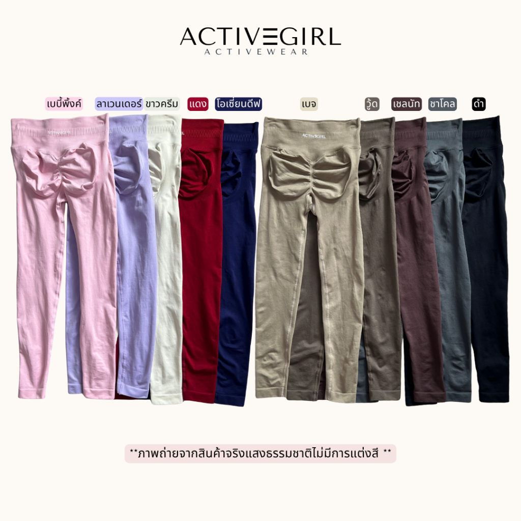 Activegirl - ชุดออกกำลังกาย **บรา/กางเกง**ขายแยก** รุ่น Miya เอวสูงระดับกลาง มีเส้นซัพพอตยกก้นกลมเด้ง บรามีฟองน้ำ