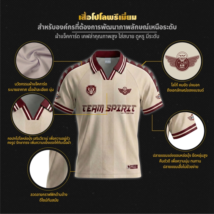 ZUZA - Team Spirit เสื้อกีฬาคอปก ทีมสปิริต เเขนสั้น ดีเทลปลายแขนผ้าหล่อบุ้ง พิมพ์ลายซับลิเมชั่น เนื้อผ้าแจ็คการ์ด