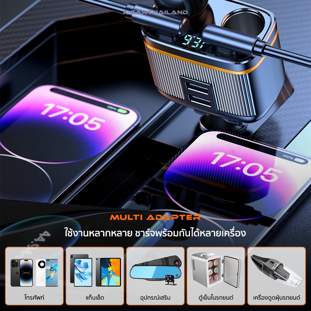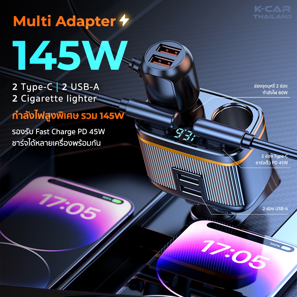 ที่ชาร์จแบตในรถ MULTIADAPTER 145W FastCharge มี6ช่องชาร์จ ใช้งานมัลติฟังก์ชัน พร้อมจอแสดงผล