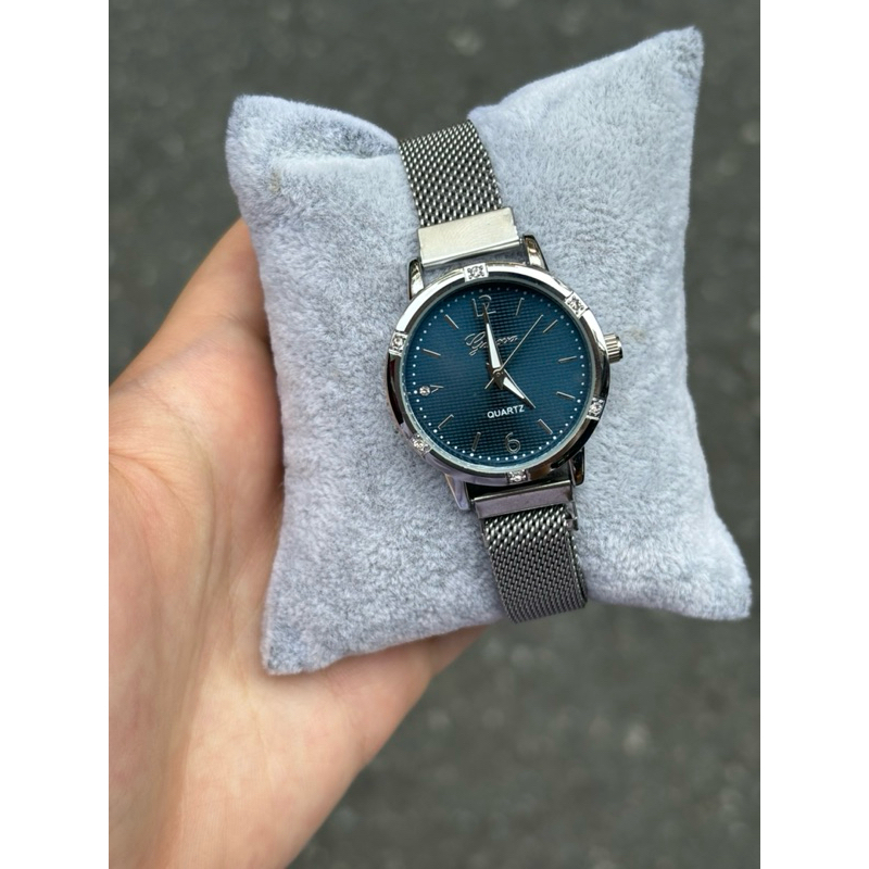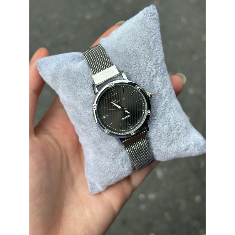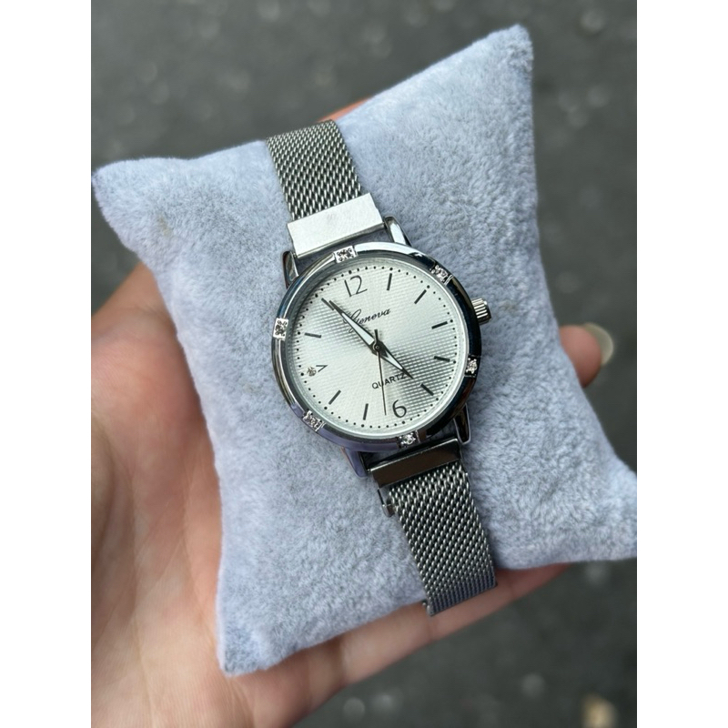 Geneva มี4สีให้เลือก เหมาะสำหรับผู้หญิง ดูเวลาด้วยเข็ม หน้าปัดมีตัวเลข6กับ12 ขอบเป็นเพชร สายเป็นแบบแม่เหล็ก