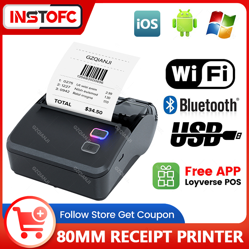 เครื่องพิมพ์ใบเสร็จ 80mm WIFI Bluetooth USB รองรับ Android และ IOS เวอร์ชัน Loyverse App