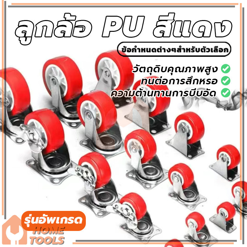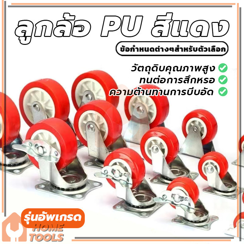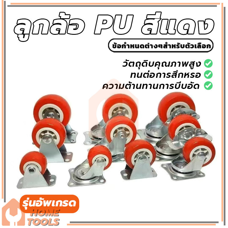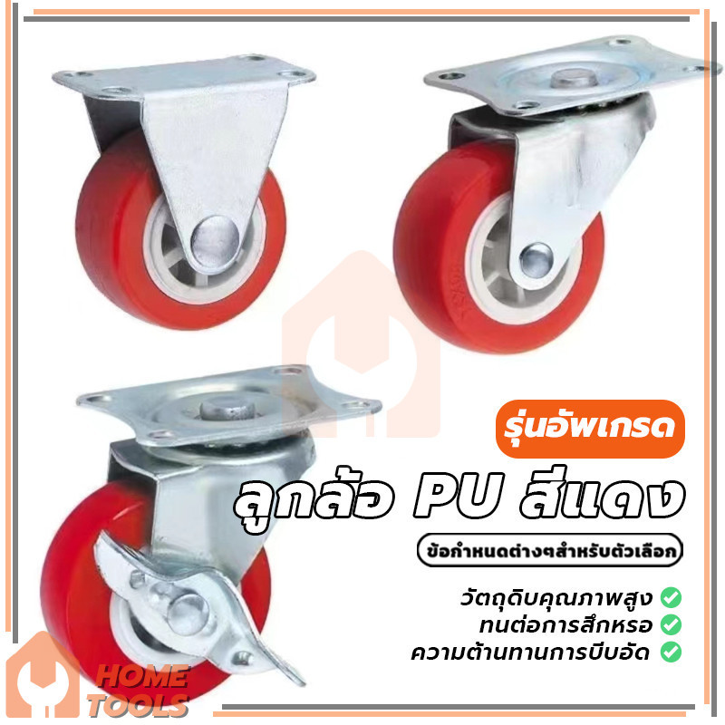 ลูกล้อ PU สีแดง ลูกล้อรถเข็น ล้อเก้าอี้1.5นิ้ว 2นิ้ว โพรียูรีเทน ลูกล้อโพรียูรีเทน หมุนได้