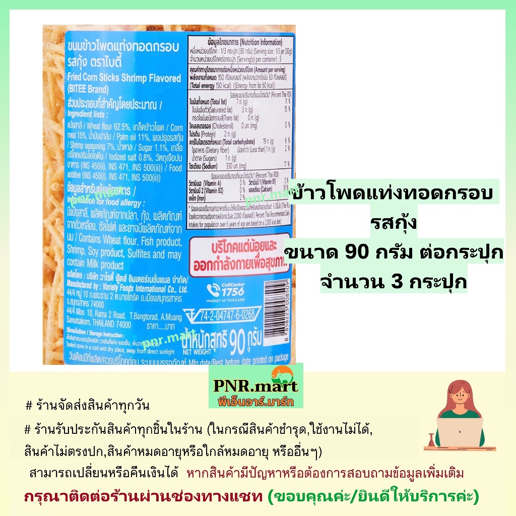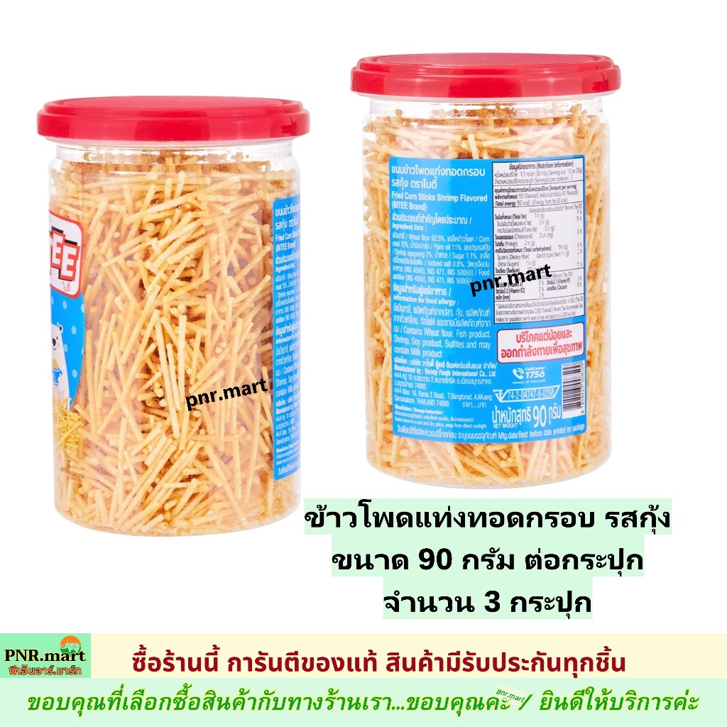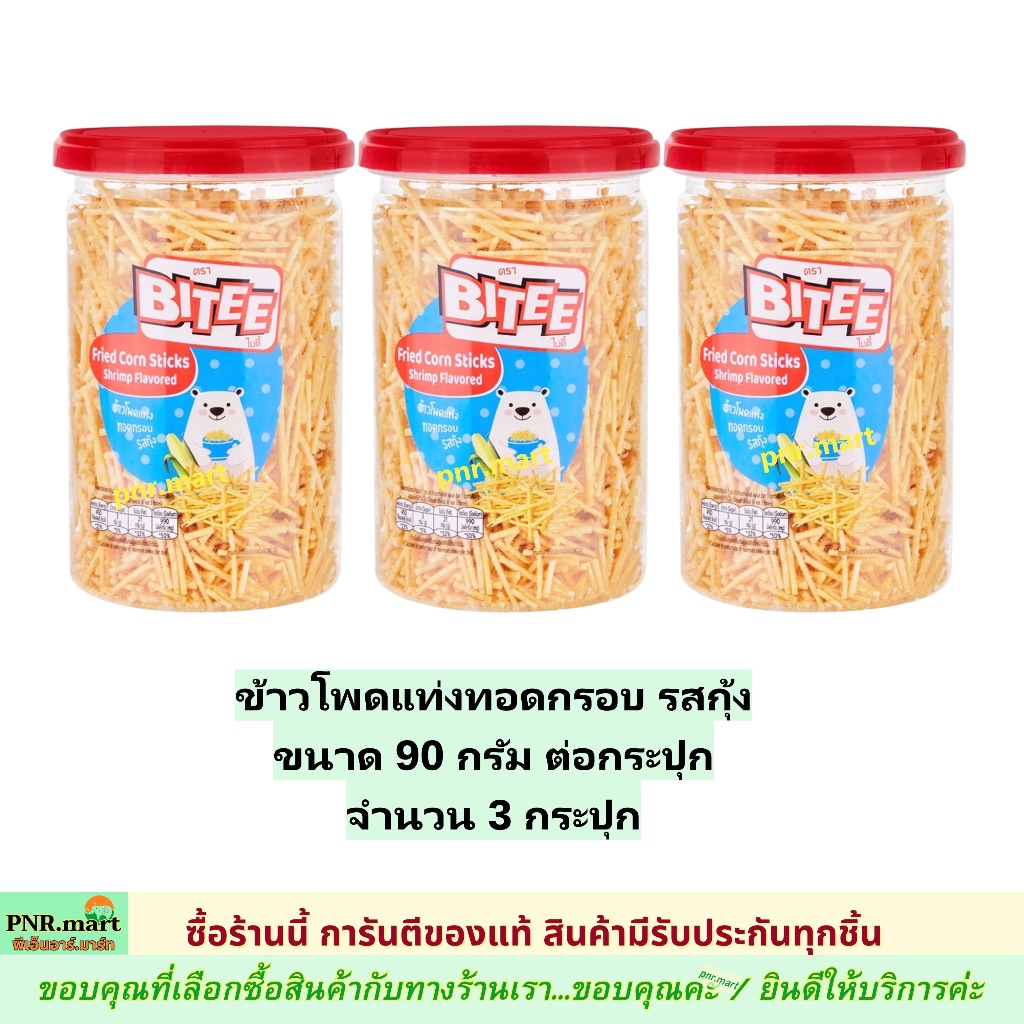 PNRmart[3x90g] ไบตี้ ข้าวโพดแท่งทอดกรอบ รสกุ้ง bites fried corn stick snack / ขนมหนวดกุ้ง ปาร์ตี้ กินเล่น ขนมงานเลี้ยง