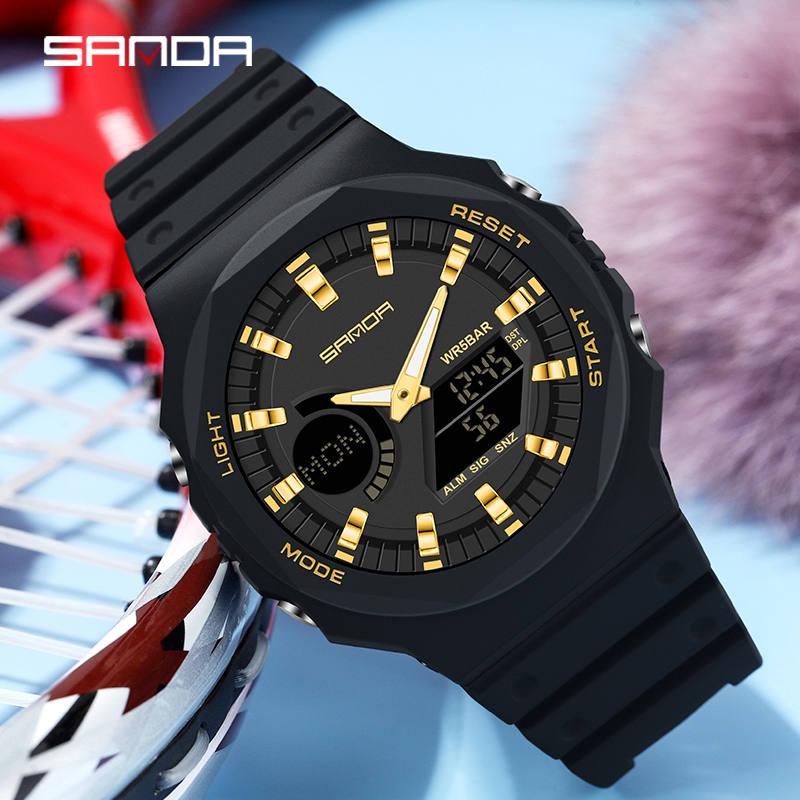 Sanda 6016-3/in สต็อกนาฬิกาผู้หญิงแฟชั่นหรูหรานาฬิกาผู้หญิงส่องสว่างจอแสดงผลคู่กีฬานาฬิกา unisex