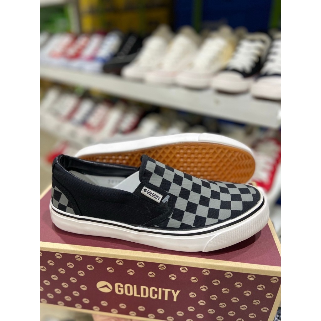 รองเท้าผ้าใบสลิปออนลายหมากรุกGOLDCITY NS-901 Size.39-45 มีให้เลือก7สี ลายหมากรุก ลายตาราง (MM28)