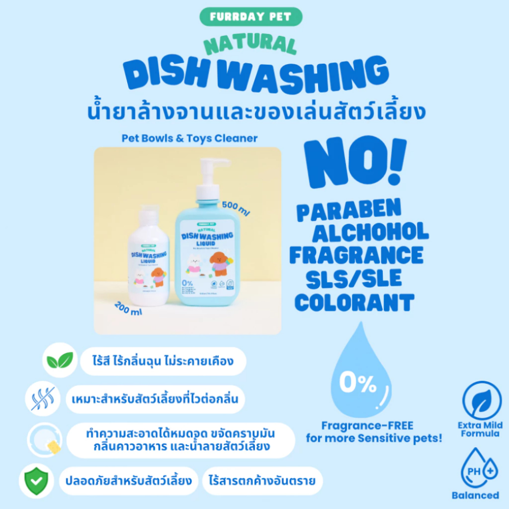 Furrday Pet น้ำยาล้างจานชามสัตว์เลี้ยง ไม่ใส่สี ไม่ใส่กลิ่น อ่อนโยนปลอดภัยต่อสุนัข แมว กำจัดคราบ ไร้สารเคมีที่รุนแรง