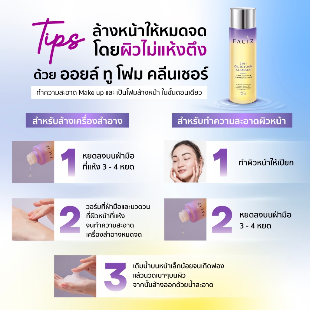 Faciz Oil to Foam Cleanser 120 ml. เฟซิส 2 อิน1 ออยล์ทู โฟม คลีนเซอร์ 120 ml.