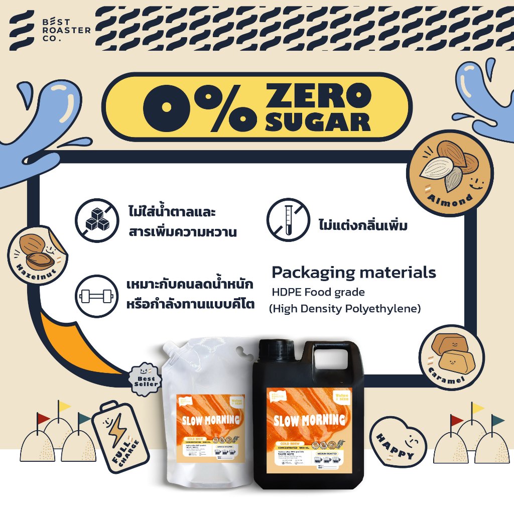กาแฟสกัดเย็น Slow morning กาแฟคั่วกลาง กาแฟโทนช็อคโกแลต คาราเมล Coldbrew ขนาด 1000 ML