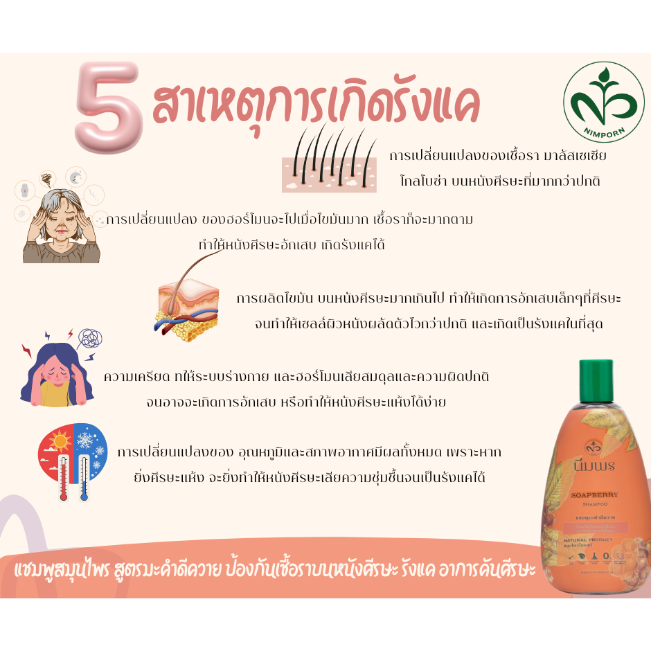นิ่มพร แชมพูสมุนไพร สูตรมะคำดีควาย ป้องกันเชื้อราบนหนังศีรษะ รังแค อาการคันศีรษะ ( แกลอน 1 Kg.)