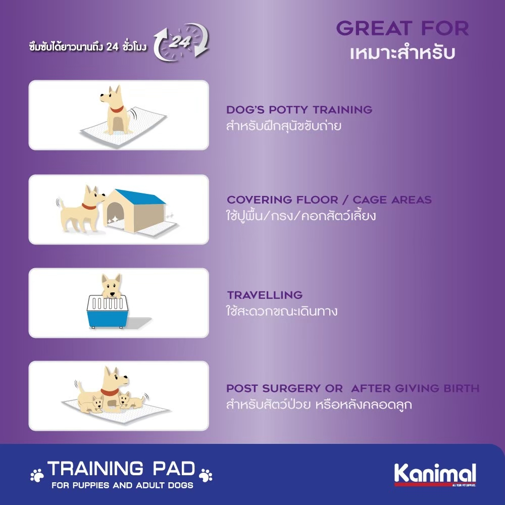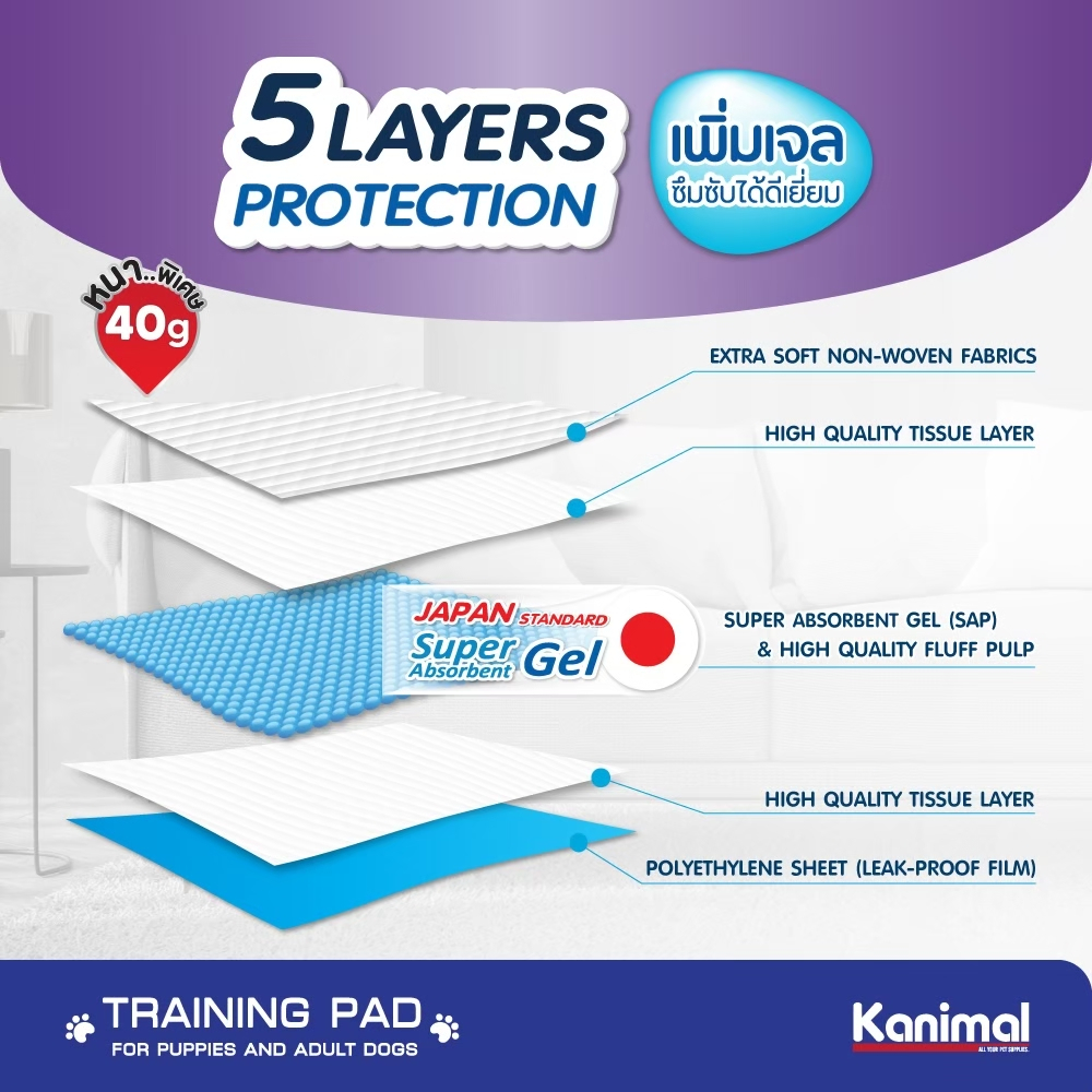 Kanimal Training Pad คานิมอล รุ่น Super Gel แผ่นรองฉี่สุนัข แผ่นรองซับ สำหรับสุนัข มีหลายขนาดให้เลือก แผ่นรองฝึกขับถ่าย