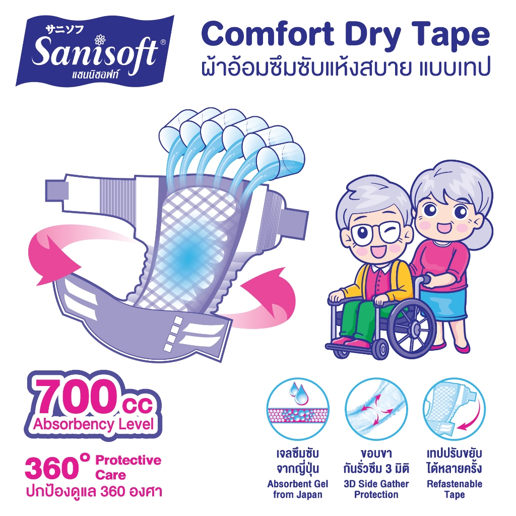 [ยกลัง 4ห่อ] Sanisoft/แซนนิซอฟท์ ผ้าอ้อมผู้ใหญ่เทป ซึมซับ700cc(ไซส์ L:44-55นิ้ว/120-140ซม)24ชิ้น/ห่อ
