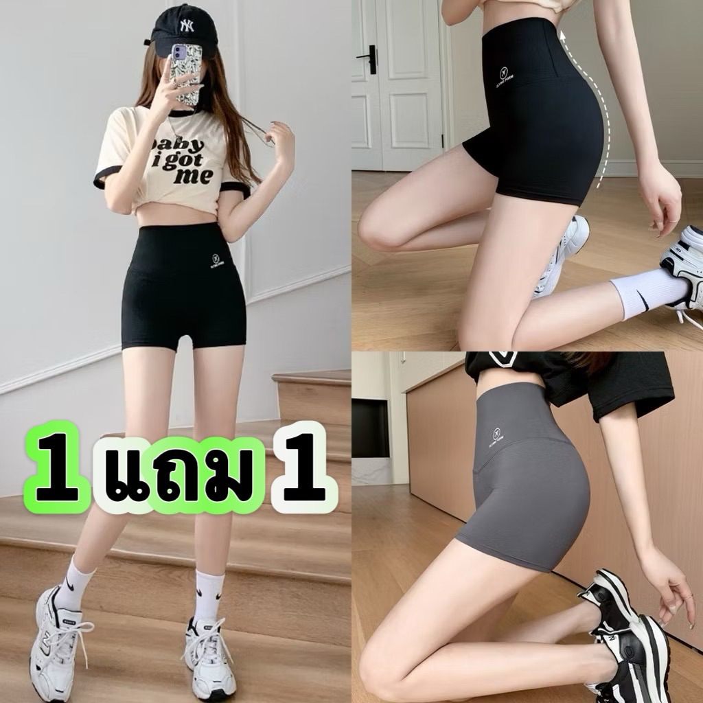 099(1แถม1) กางเกงกระชับสัดส่วน กางเกงขาสั้นกาง โยคะ บางเบา ใส่ออกกำลังกาย ระบายอากาศ ได้ดีเหมาะกับสภาพอากาศร้อน